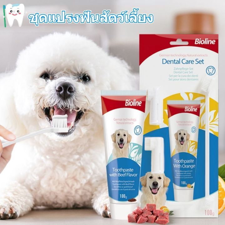 Bioline ชุดฝึกแปรงสุนัข ยาสีฟันทานได้ แปรงฟันหมา แถมฟรีแปรงสีฟัน