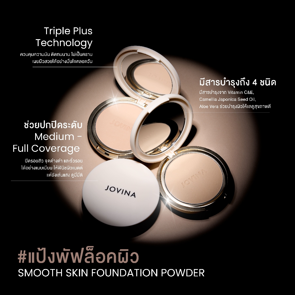 แป้งพัฟผสมรองพื้น Jovina Smooth Skin Foundation Powder SPF30 PA+++ เบลอรูขุมขน ติดทน มีกันแดดในตัว