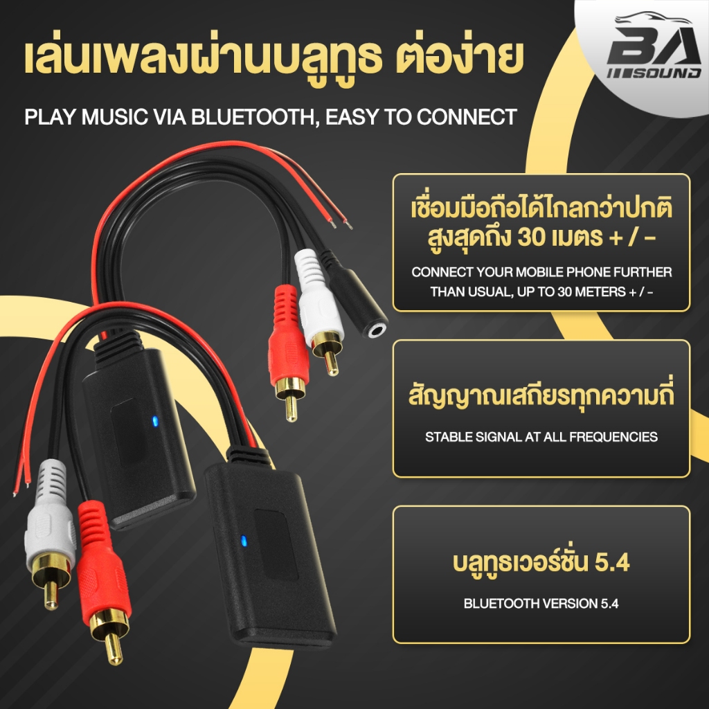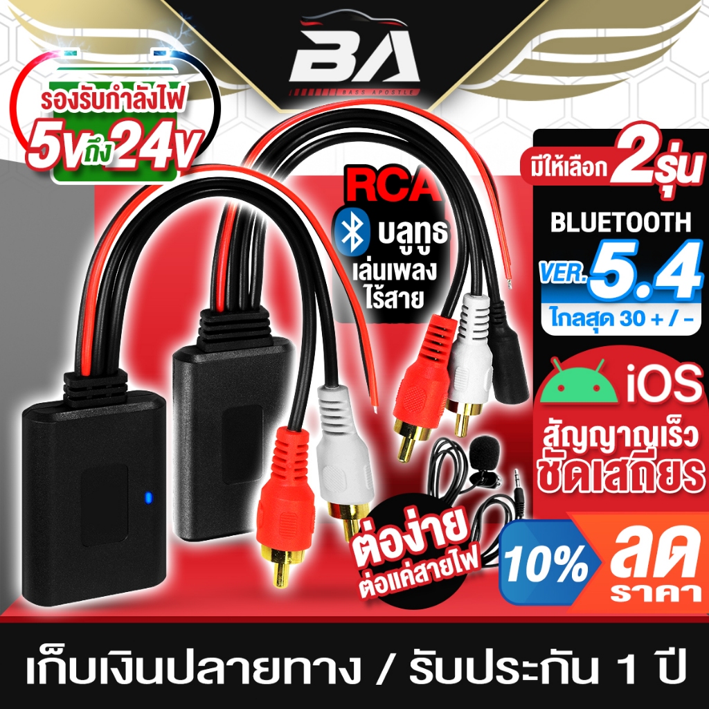BA SOUND บลูทูธ 5.4 ใหม่!!! รองรับ 5V-24V สาย RCA บลูทูธ RCA AUX ใช้ได้ทั้ง Android & IOS ต่อเครื่องเสียง เพาเวอร์แอมป์