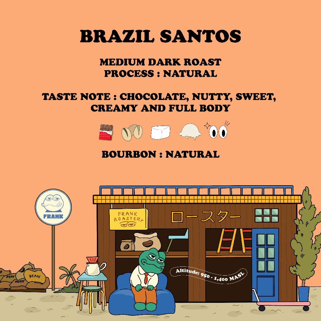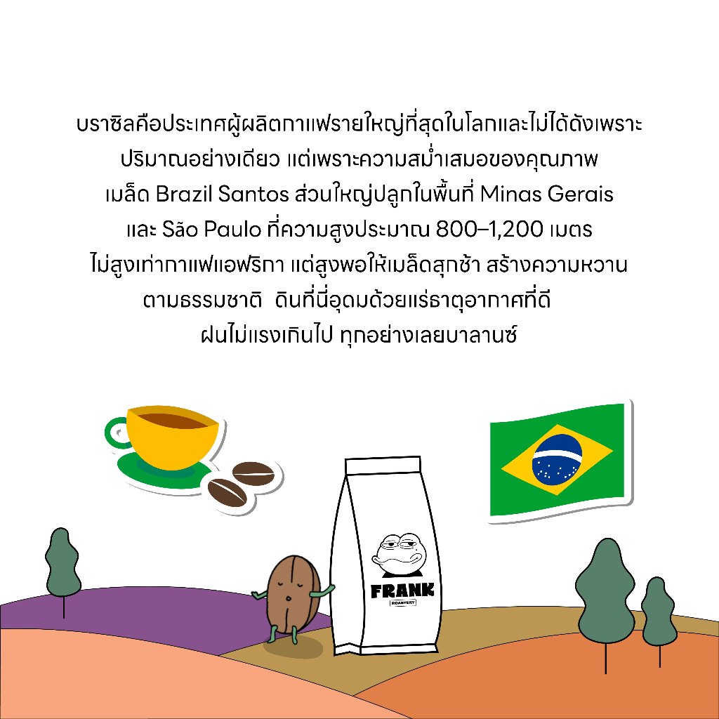 Frank's : เมล็ดกาแฟคั่วกลางเข้ม บลาซิล ซานโต้ส Brazil Santos เกรดพรีเมี่ยม 200g.-1kg.(Single Origin)