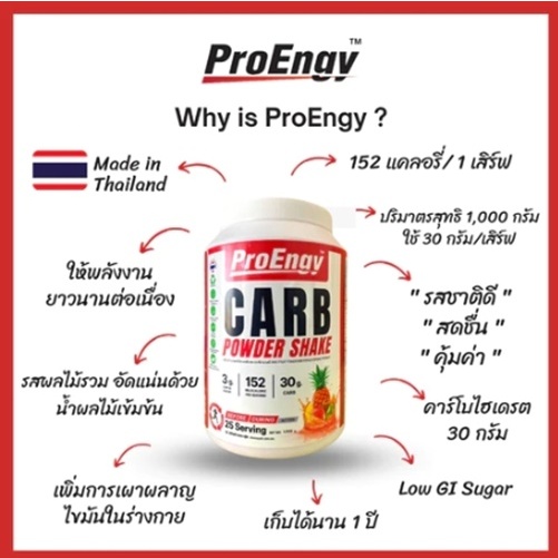 Pro Engy Carb Powder เครื่องดื่มผงให้พลังงาน สำหรับนักกีฬา ออกกำลัง ขนาด 1,000g ทานง่าย ชงได้ในน้ำเย็น ไม่เลี่ยน