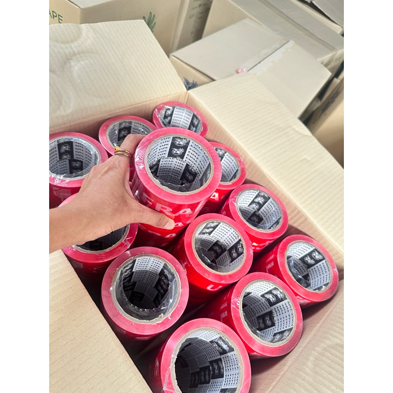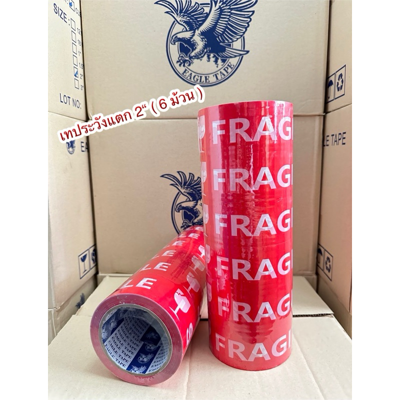 เทประวังแตกสีแดง เทปใส 🔺6 ม้วน ( 100 หลา )🟡สีคมชัด🟡ส่งตรงจากโรงงาน📦🚚(ออกบิลเงินสด)