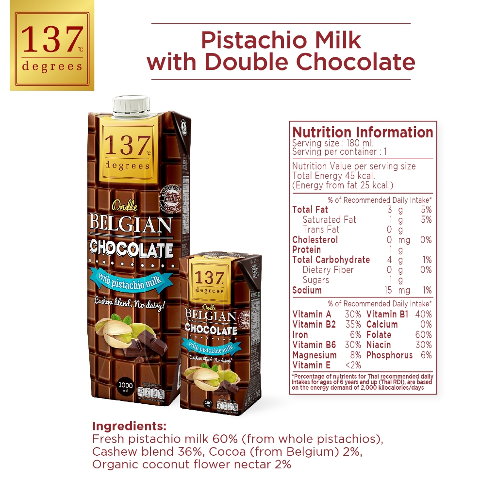 (แพ็คเดี่ยว)137 ดีกรี นมพิสตาชิโอ สูตรดับเบิ้ลช็อคโกแลต ขนาด 1000ml x 1 กล่อง (Pistachio Milk Double Chocolate 137 Degre