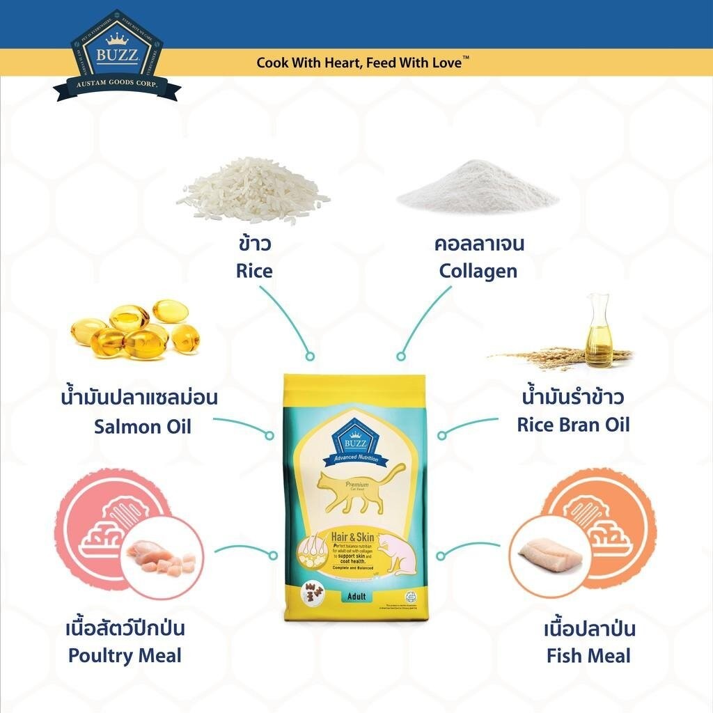 [ 1 kg. ] Buzz Balanced Plus+ อาหารเม็ดแมว บัซซ์ สูตรบำรุง สำหรับลูกแมวแม่แมว และแมวโต1ปีขึ้นไป ทุกสายพันธุ์ ขนาด 1 Kg.