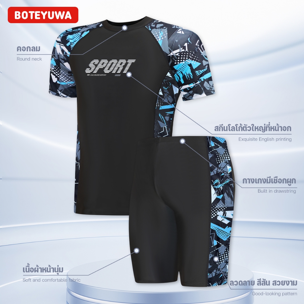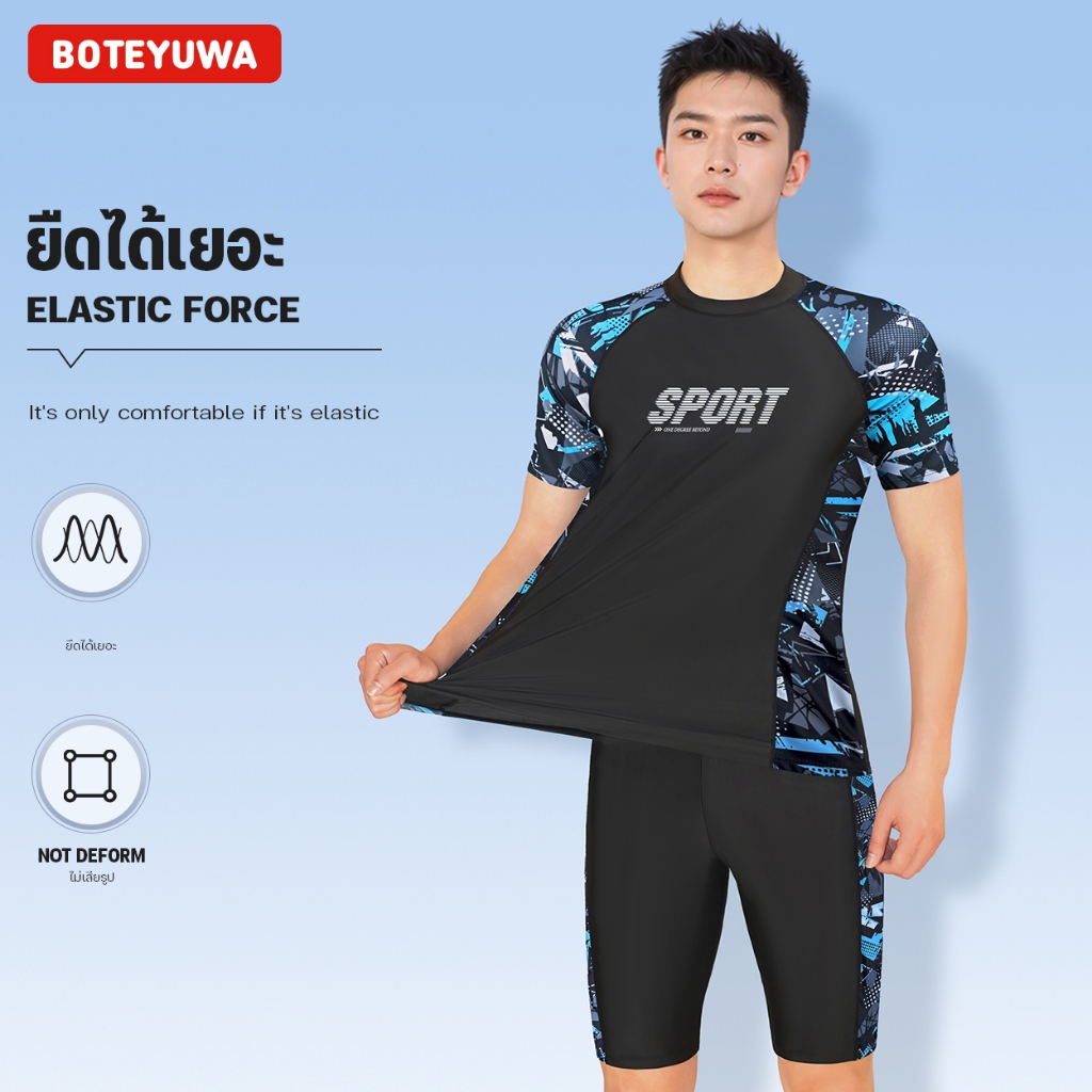 KIPSTAR ชุดว่ายน้ำแขนสั้นขาสั้น ความยืดหยุ่น แห้งเร็ว D5991
