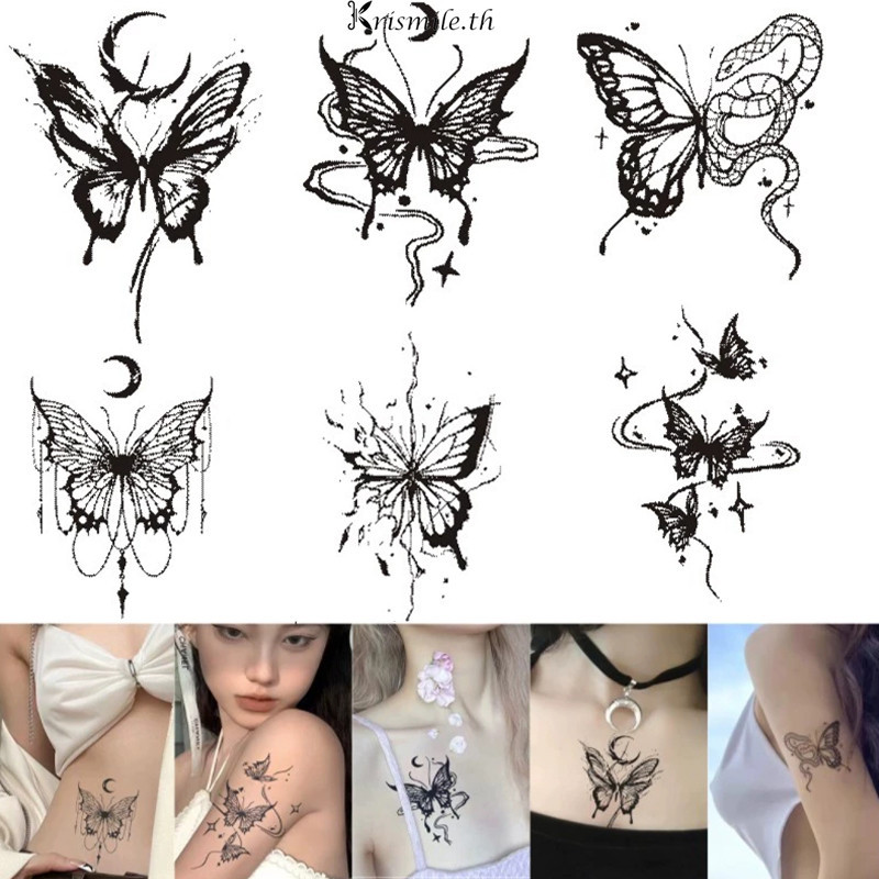 COD-ในไทย💖สติกเกอร์รอยสัก รูปผีเสื้อ สีดำ Insสไตล์เกาหลี สำหรับผู้หญิง ชั่วคราว กึ่งถาวร ถอดออกได้ เครื่องประดับแฟชั่น-
