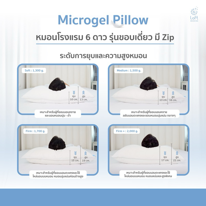 หมอนโรงแรม 6 ดาว หมอนไมโครเจล ผ้าหุ้มป้องกันไรฝุ่นมีซิป