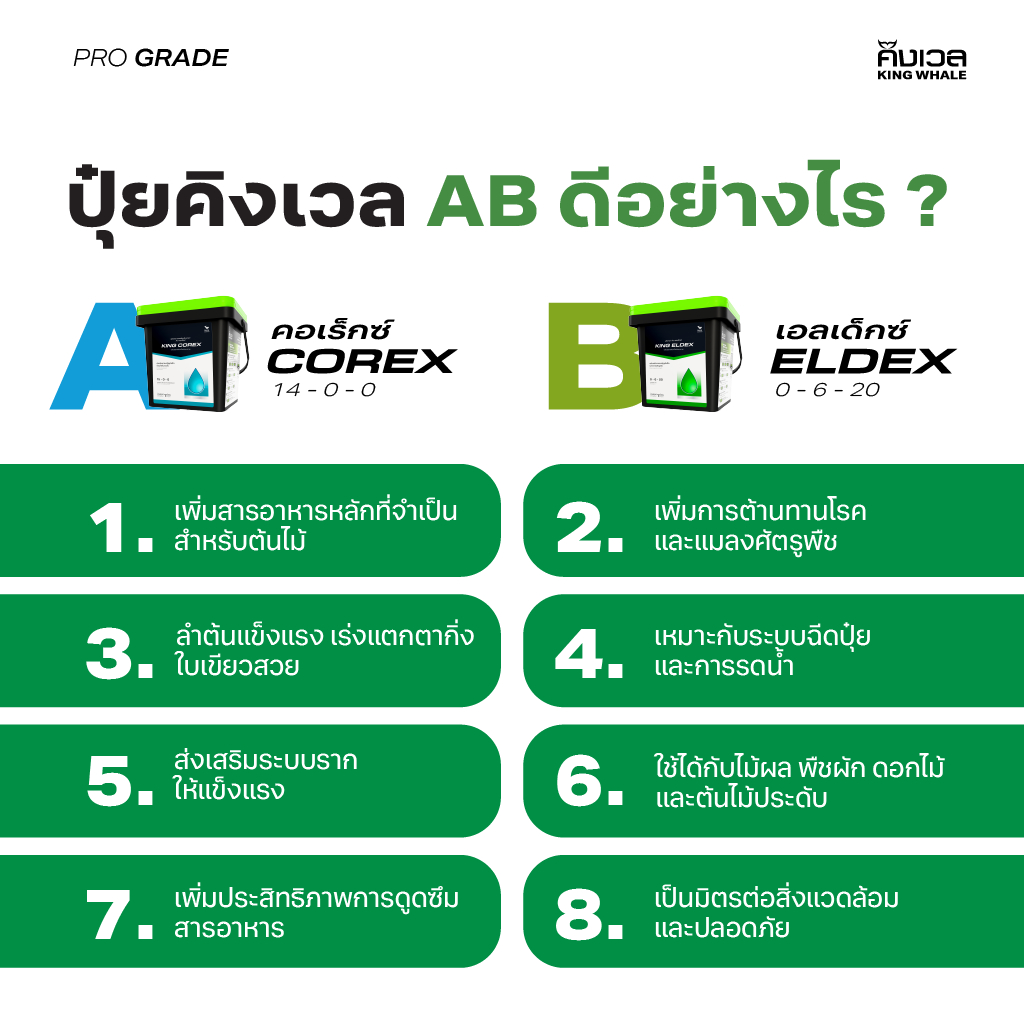 ชุดปุ๋ย AB สำหรับพืชใบ ช่วงทำใบทุกชนิด เร่งใบ โตไว แข็งแรง ดูดซึมไว| 2-PART Veg Stages (COREX + ELDEX) | ปุ๋ย KING WHALE