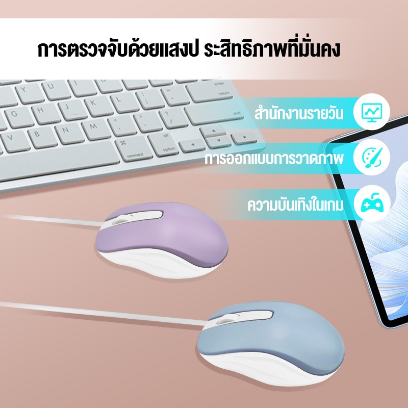 OLYPS Wired mouse การตรวจจับแสง Frosted ลื่น มีสีสัน เข้ากันได้กับ Windows/Mac/iOS