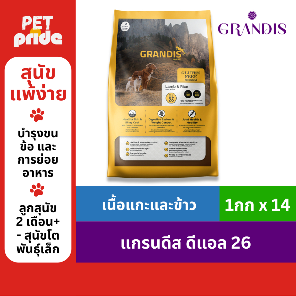 แกรนดีส DL26 (14กก) อาหารสุนัขเกรดพรีเมี่ยม GRANDIS สูตรกลูเตนฟรี แกะและข้าว