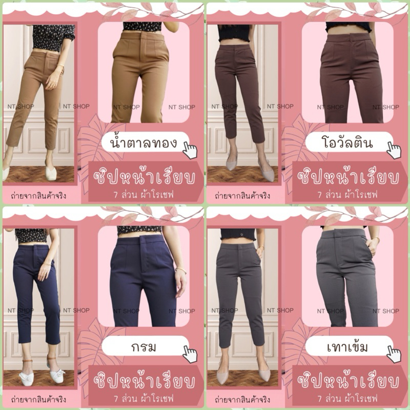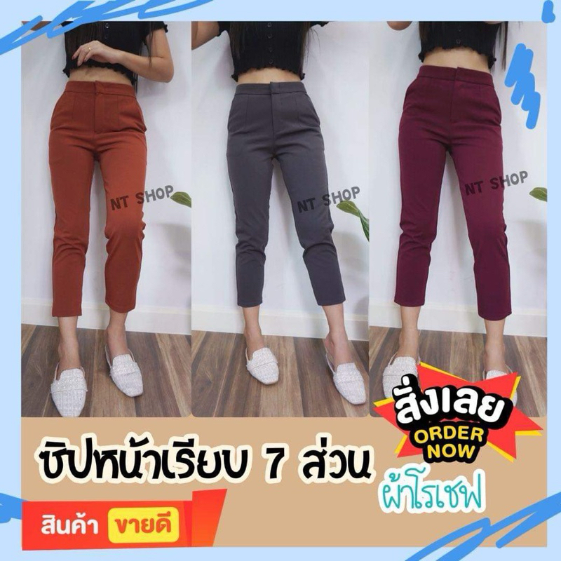 กางเกงผ้าโรเชฟ 7ส่วน เอวสูง ซิปหน้า ตะขอหน้า กระเป๋า2ข้าง ใส่ทำงานได้ ผ้าหนา นุ่ม ซักแล้วไม่ต้องรีด