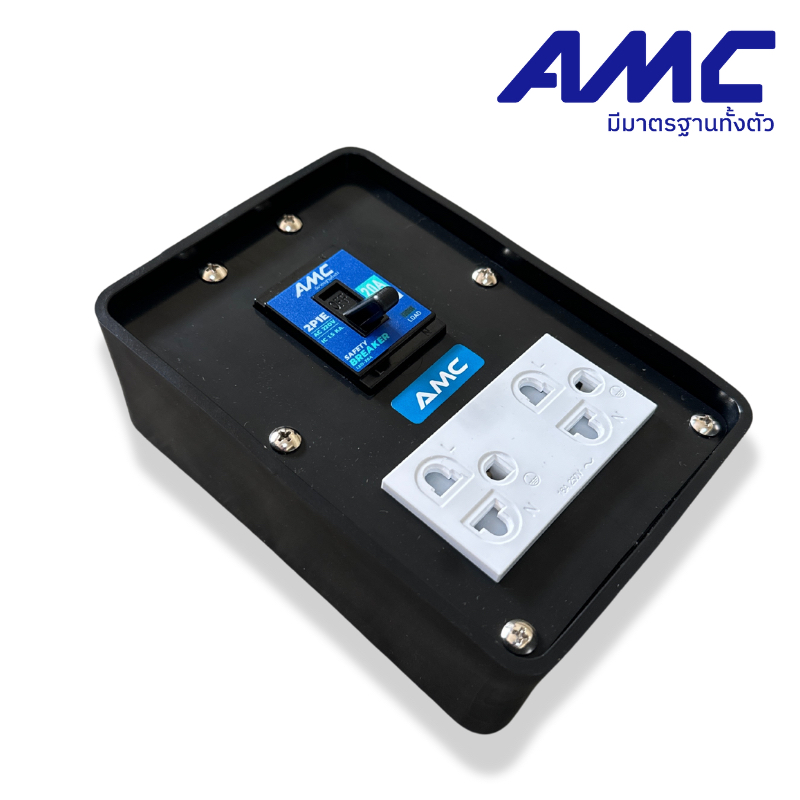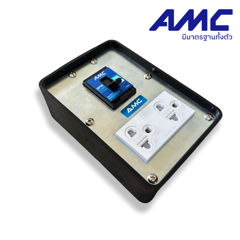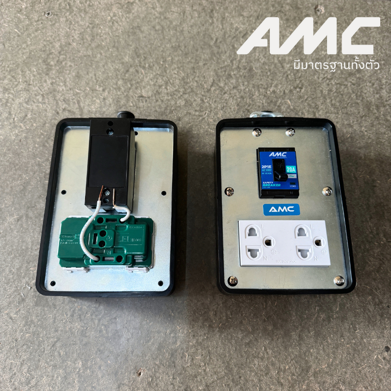 AMC ปลั๊กบล็อคยางเปล่า 2 ช่องเสียบ พร้อมเต้ารับกราวคู่ 16A เบกเกอร์ มีไฟ LED 20A รับประกัน 1ปี CK12XX