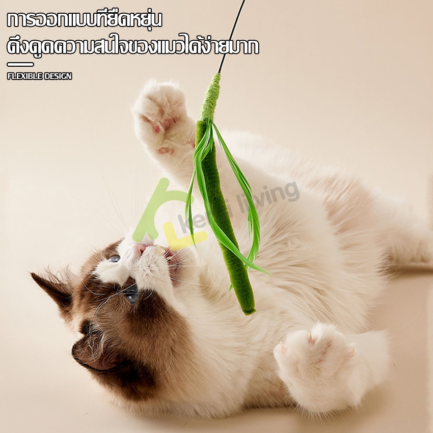 Harmcat ไม้ตกแมว DIY พร้อมขนนก ไม้แหย่แมว ของเล่นแมว ของเล่นสัตว์เลี้ยง ไม้ล่อแมว มี 2 สีให้เลือก