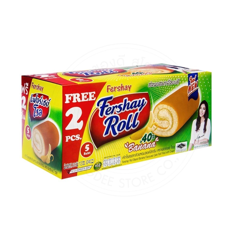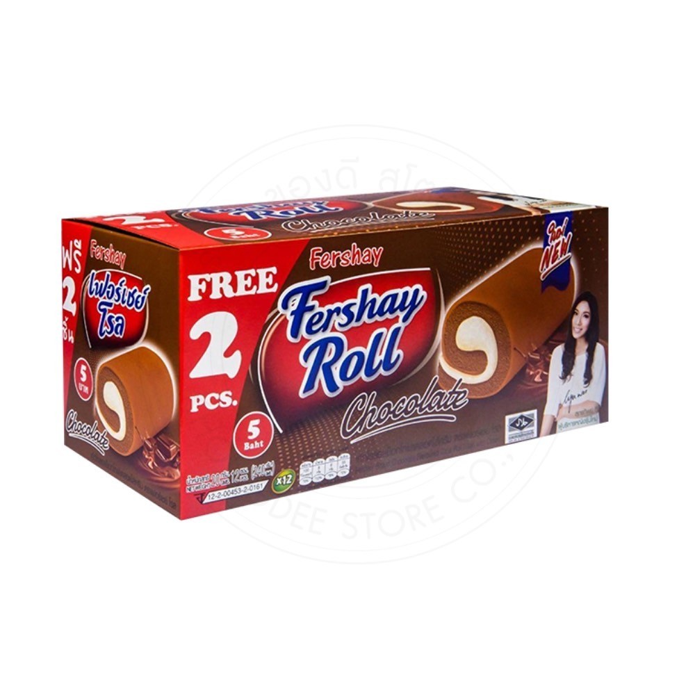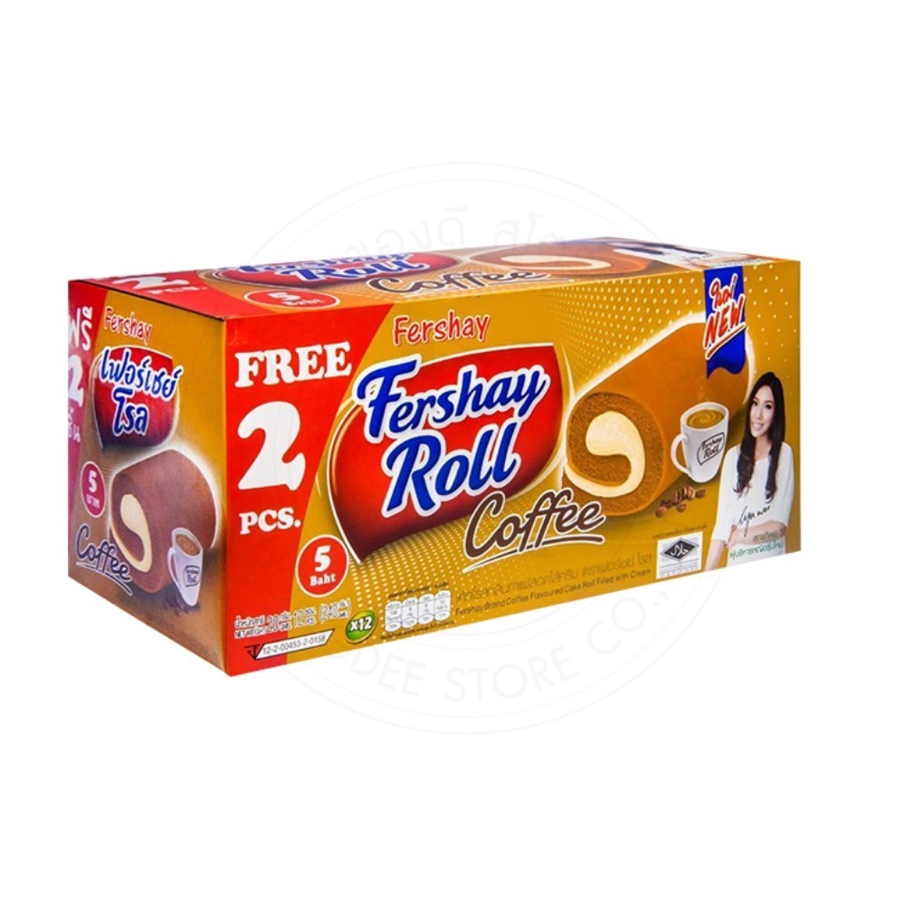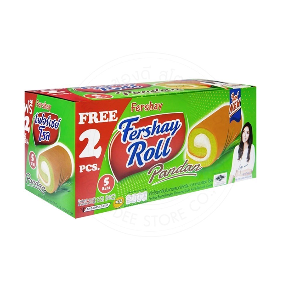 เฟอร์เชย์ Fershay เค้กโรลไส้ครีม กลิ่นใบเตย กาแฟ วานิลลา ช็อคโกแลต กล่องใหญ่ 240 กรัม 12+Free 2 (14 ชิ้น) หอม นุ่ม อร่อย