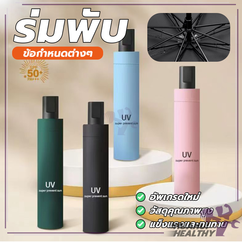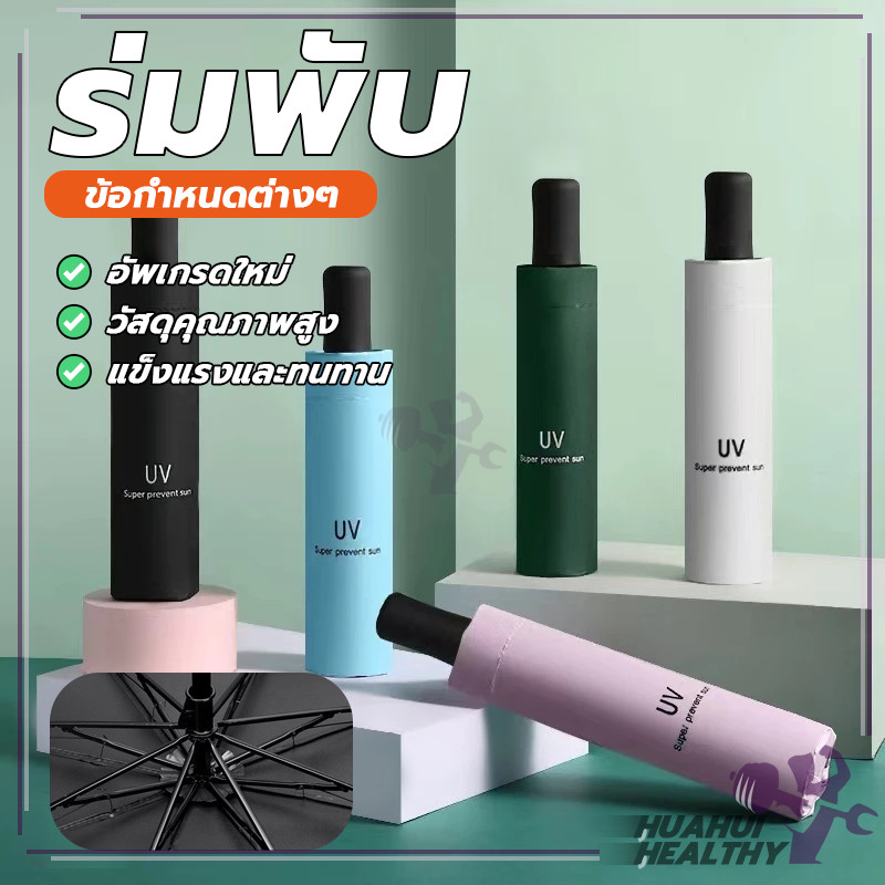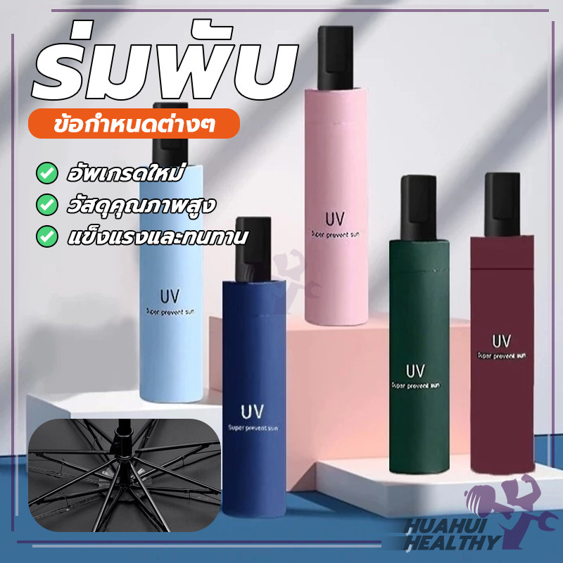 ร่มกันฝนแบบพกพา ร่มพับกันUV 3 ตอน สีพื้น ขนาดเล็ก คู่มือไม่ออโต้ มีสายห้อย สะดวกในการพกพา