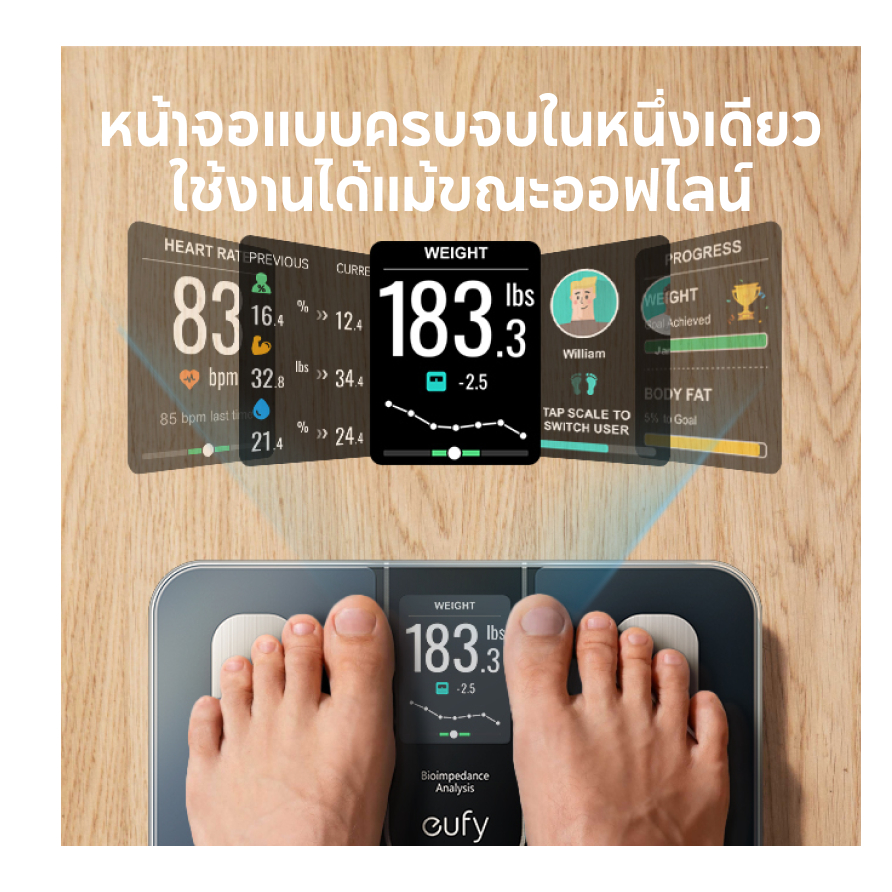 ANKER eufy เครื่องชั่งห้องน้ําอัจฉริยะ C20 พร้อมจอ TFT ขนาดใหญ่ จอแสดงผล All-in-One สําหรับการใช้งานออฟไลน์ บลูทูธ เครื่องชั่งน้ําหนักด้วยเมตริก 16 ตัว BMI หลายโหมด ความแม่นยําสูง