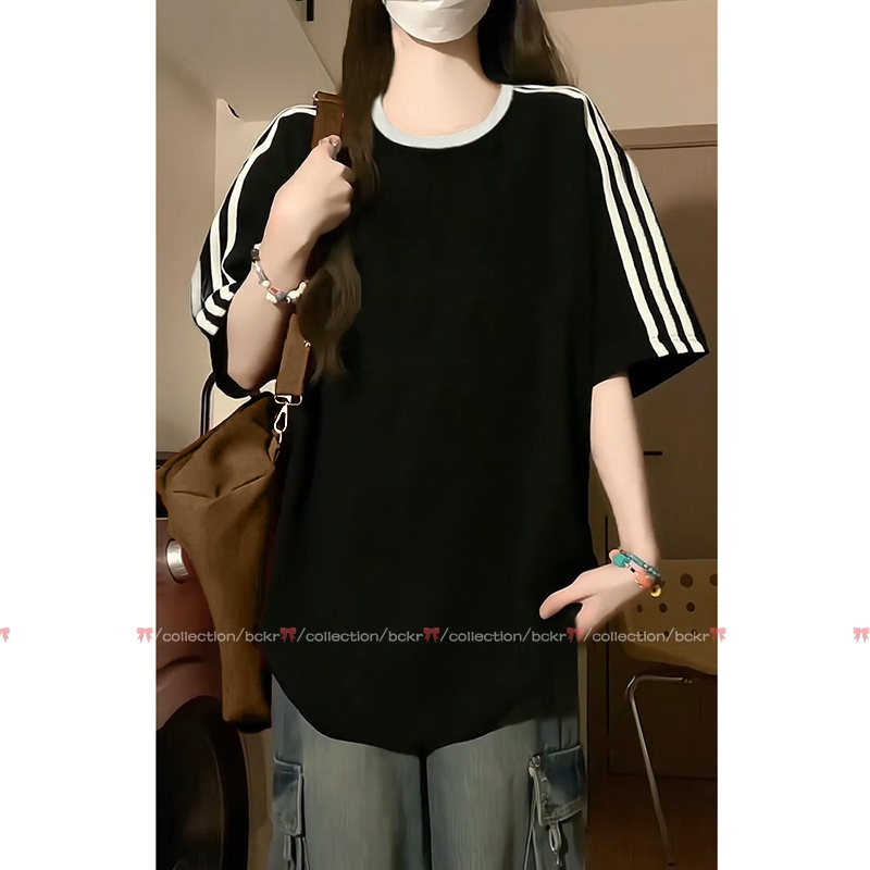 【จัดส่งตลอด 24 ชั่วโมง】🔥BCKR cotton 100% ลายสามแถบ สไตล์มินิมอล ใส่สบาย เสื้อผญ เสื่อยืด🖤 oversize คอกลม เสื้อ