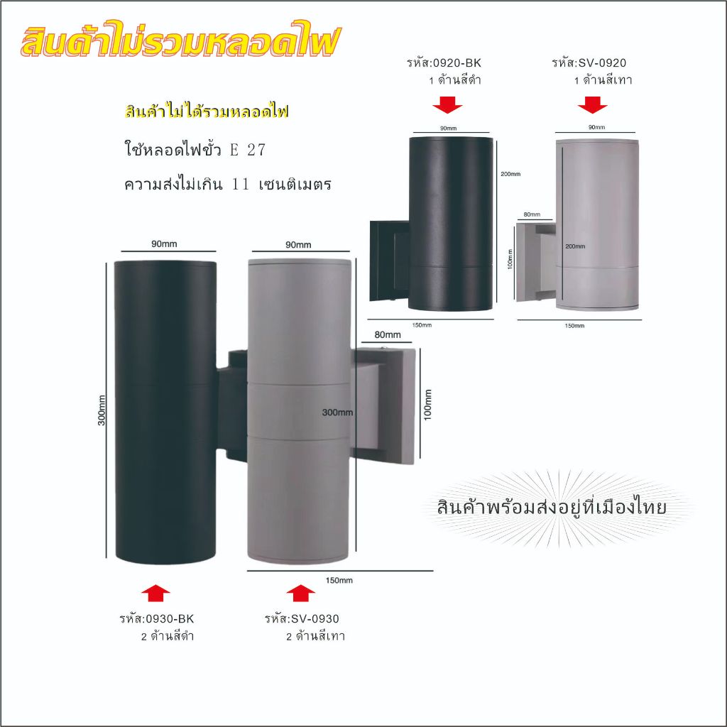 โคมไฟติดผนังภายนอกกันฝนเปลี่ยนหลอดไฟได้ใช้ขั้ว E 27