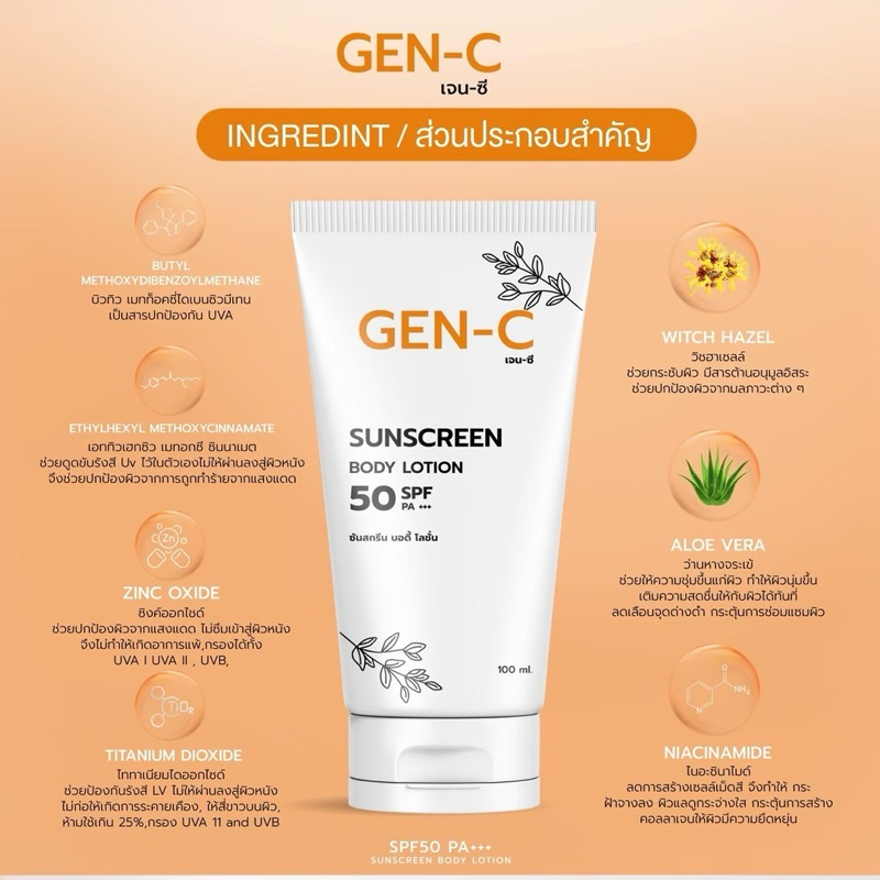 [โลชั่นกันแดด] Gen-C บูสท์ผิวขาว ครีมทาผิวขาว ครีมกันแดด SPF 50 PA+++ หอมนาน ติดทน ลดรอยแตก