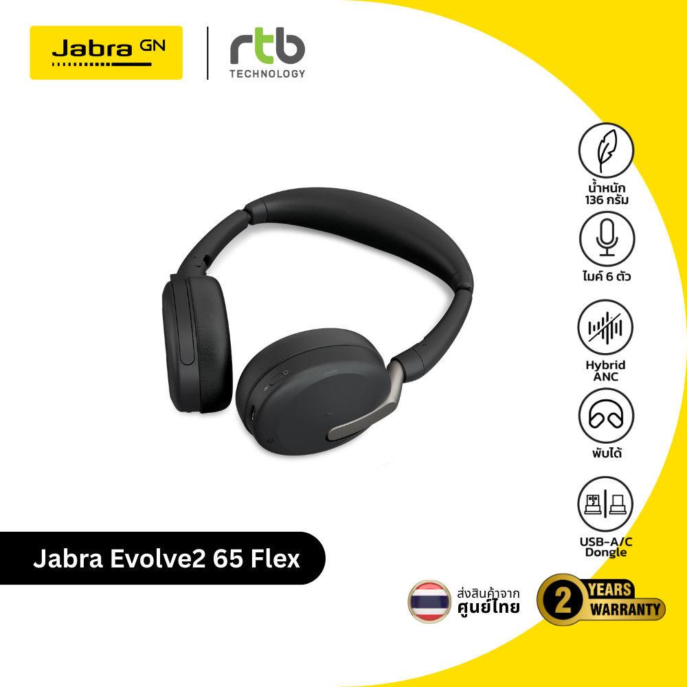 Jabra Evolve2 65 Flex Link380a/Link380c MS Stereo หูฟังประชุมออนไลน์ ไร้สาย Wireless Headset