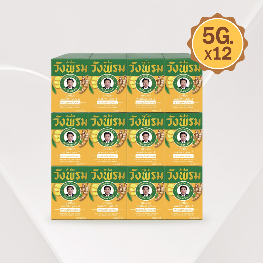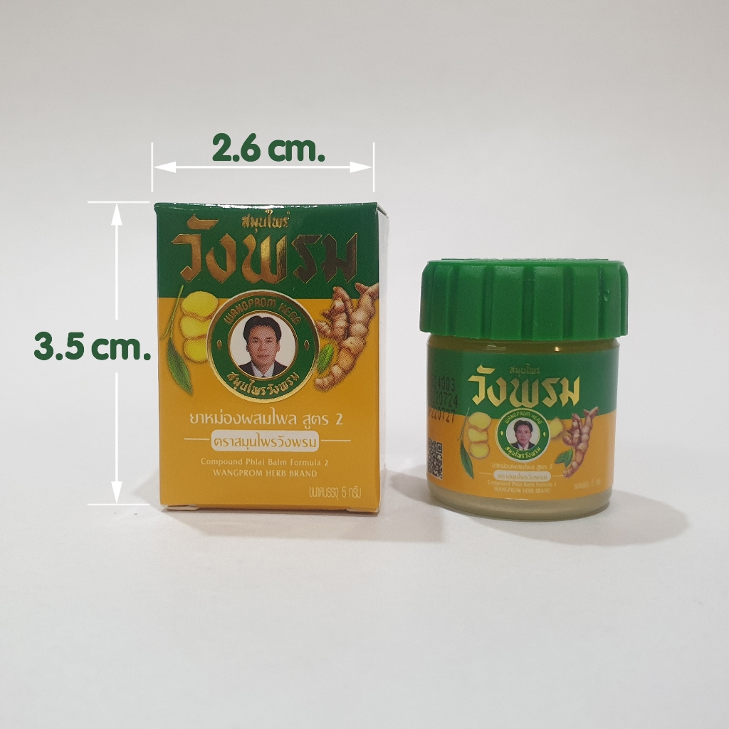 ยาหม่องสูตรไพล สมุนไพรวังพรม 5 กรัม **ขวดพลาสติกจิ๋ว** (ยกแพ็ค 12 ขวด) แพ็คเกจใหม่