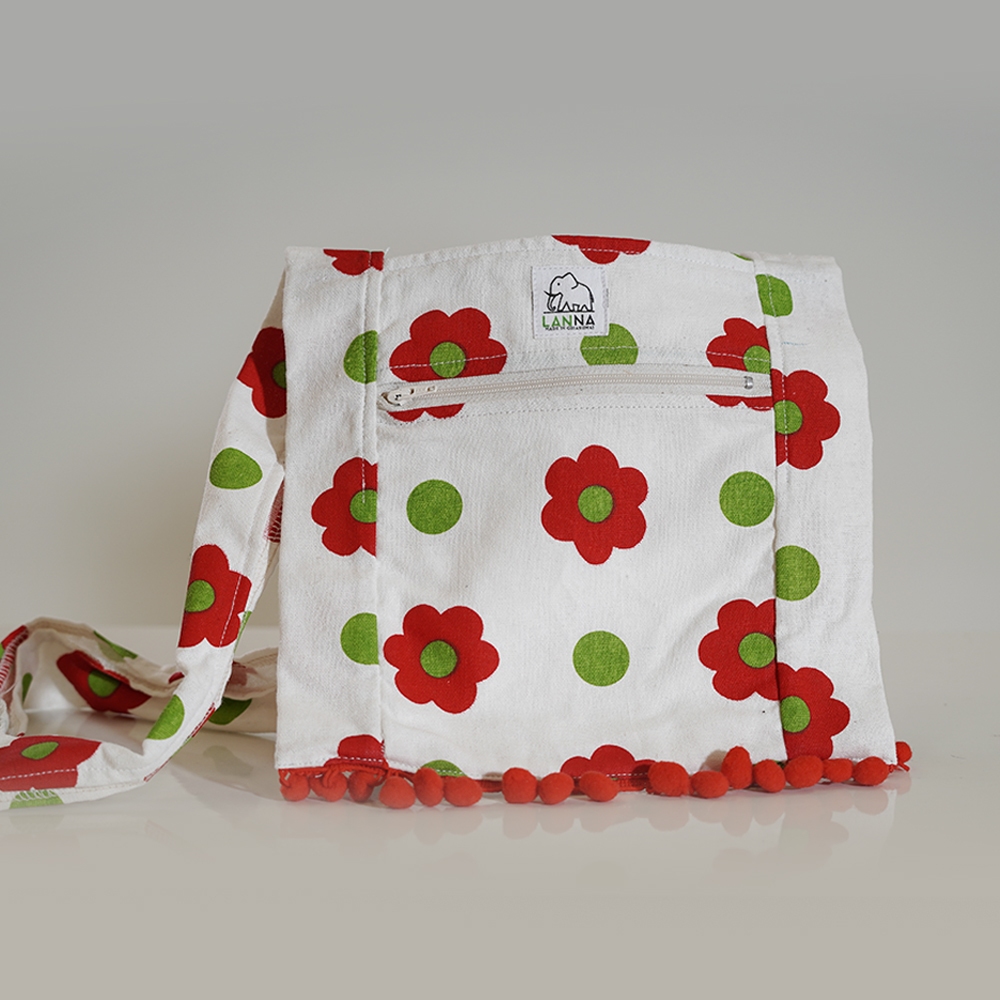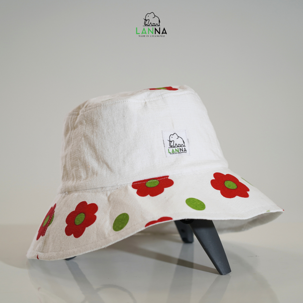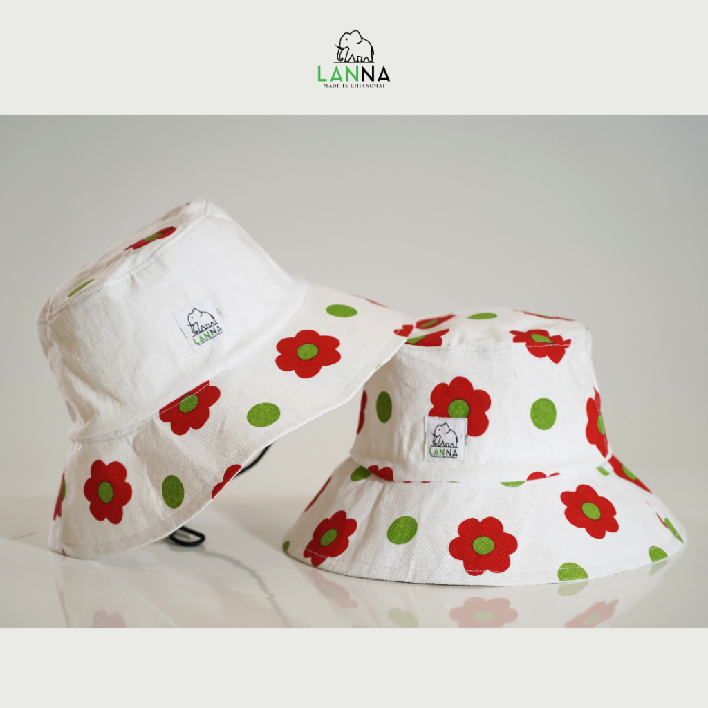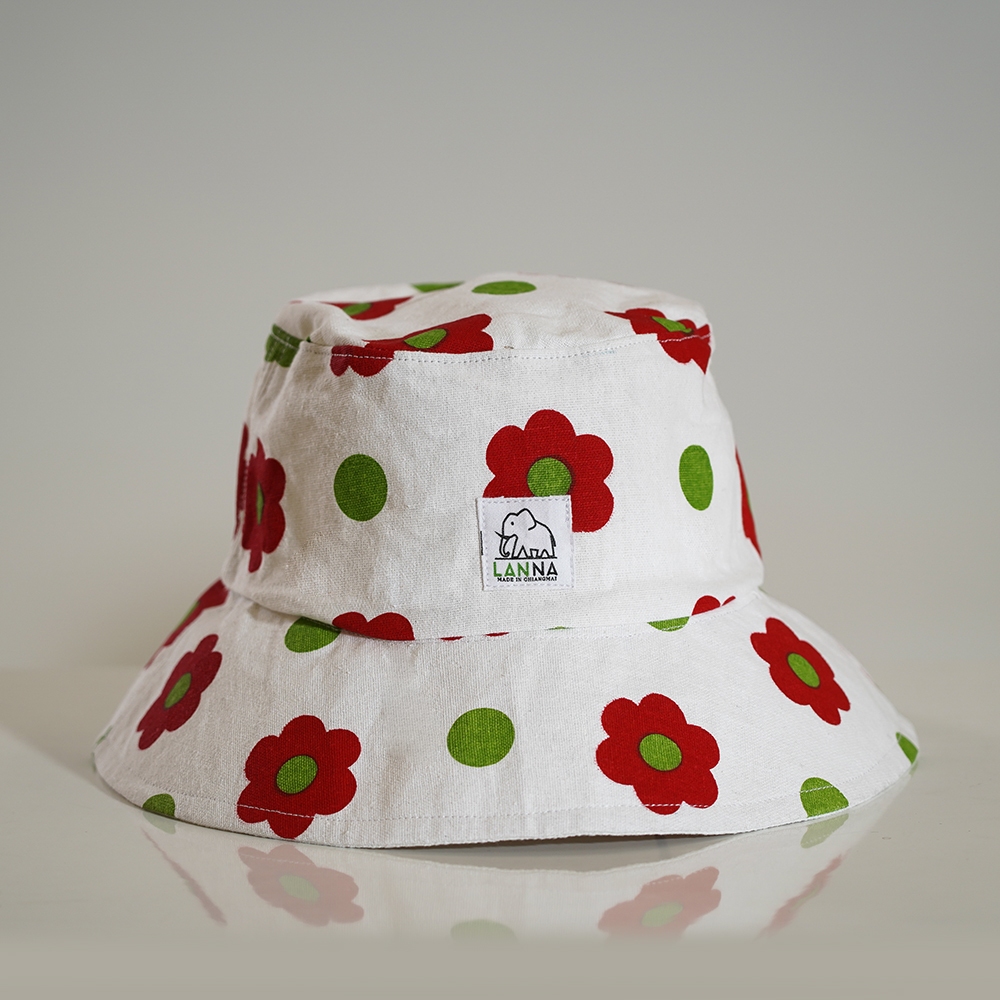 หมวกผ้าฝ้าย ลายดอกไม้แดงสุดเปรี้ยว ทรงบักเก็ต น่ารัก