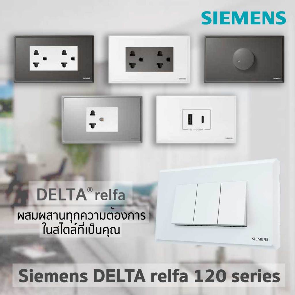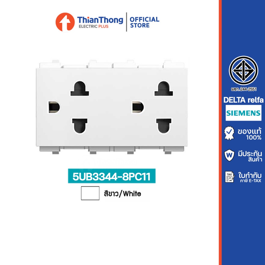 Siemens เต้ารับคู่ ขากลมแบน มีกราวด์ มีม่านนิรภัย ซีเมนส์ รุ่น Relfa 120 series