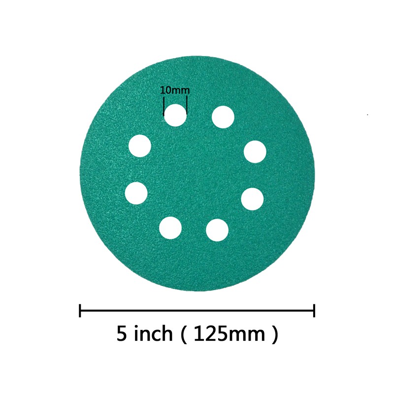 10PCS 5Inch8hole 125 มม.กระดาษทราย WetDry Hook Loop Flocking สีเขียวแผ่นขัด 60-2000