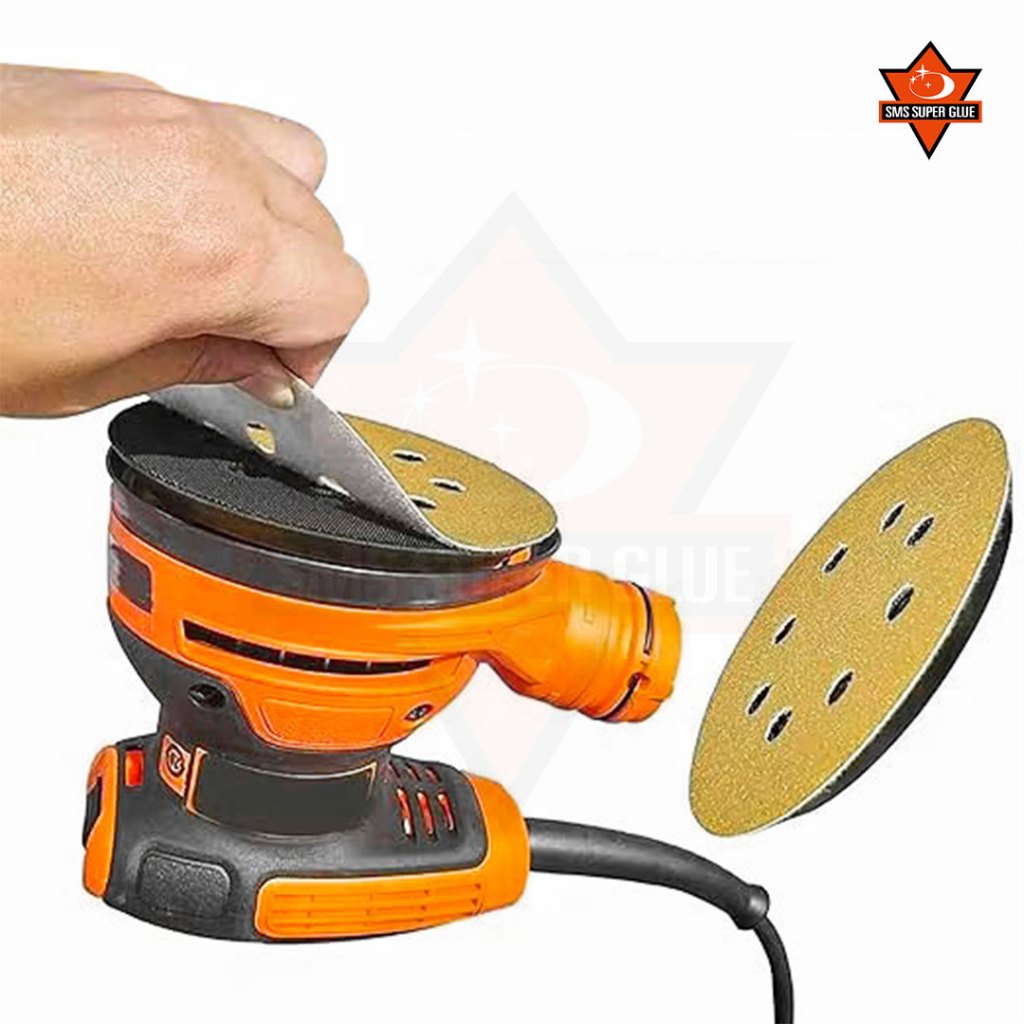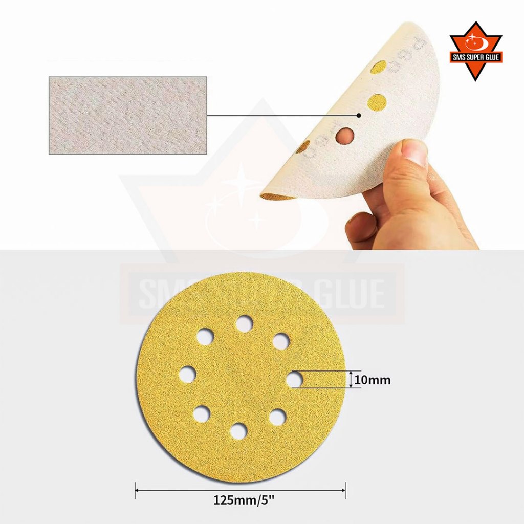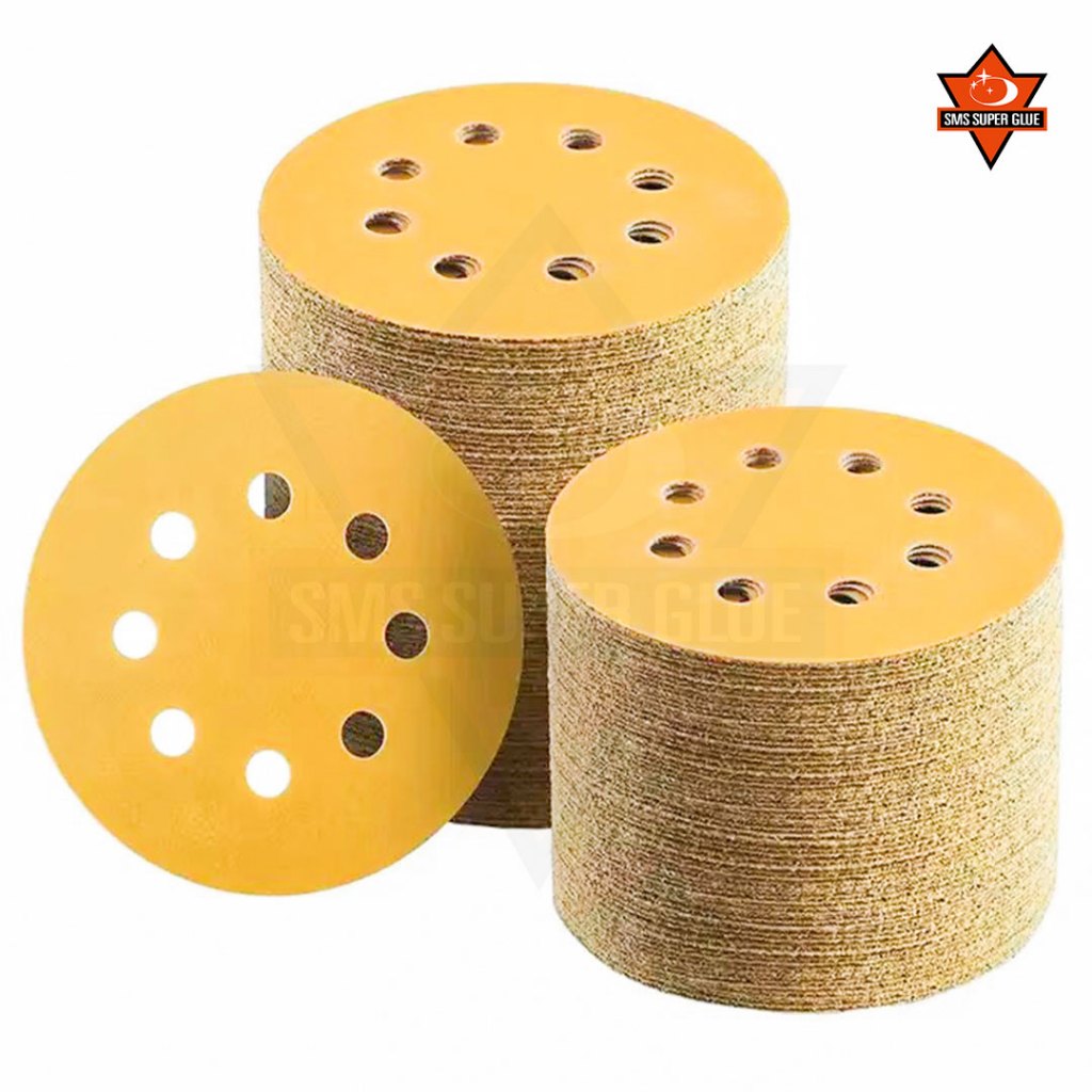 กระดาษทรายแปะมีรู กระดาษทรายกลมสีเหลือง 6นิ้ว 6รู 100แผ่น กระดาษทรายกลมหลังขน