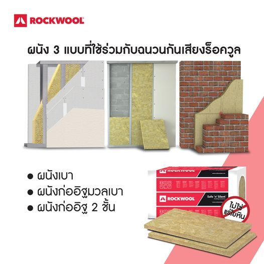 Rockwool PRO350 ฉนวนกันเสียง กันความร้อน กันไฟ สำหรับผนัง ห้องเครื่อง อาคาร ความหนาแน่น 60kg/m3