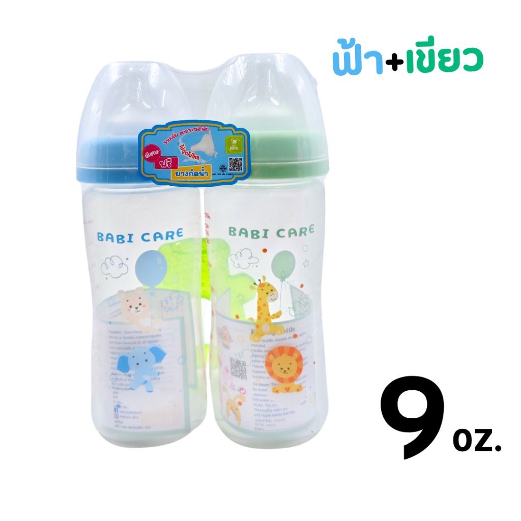(แพ็คคู่)BABI CARE เบบี้แคร์ ขวดนมคอกว้าง ขนาด 5/9 oz. มาพร้อมจุกนมไม่ดูดไม่ไหล (Freeยางกัด คละแบบ)