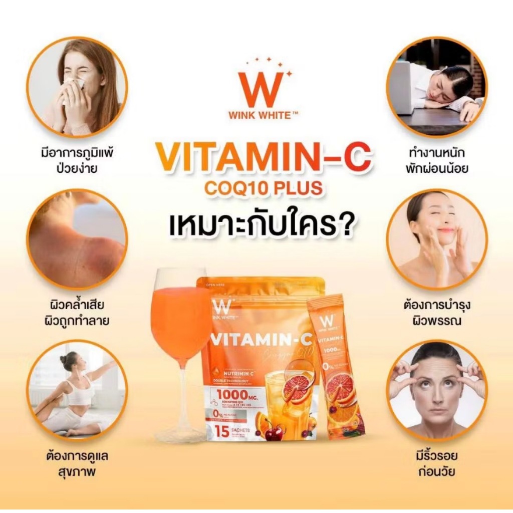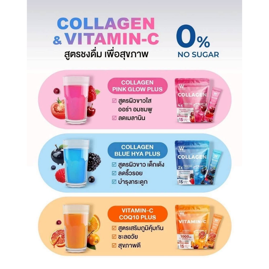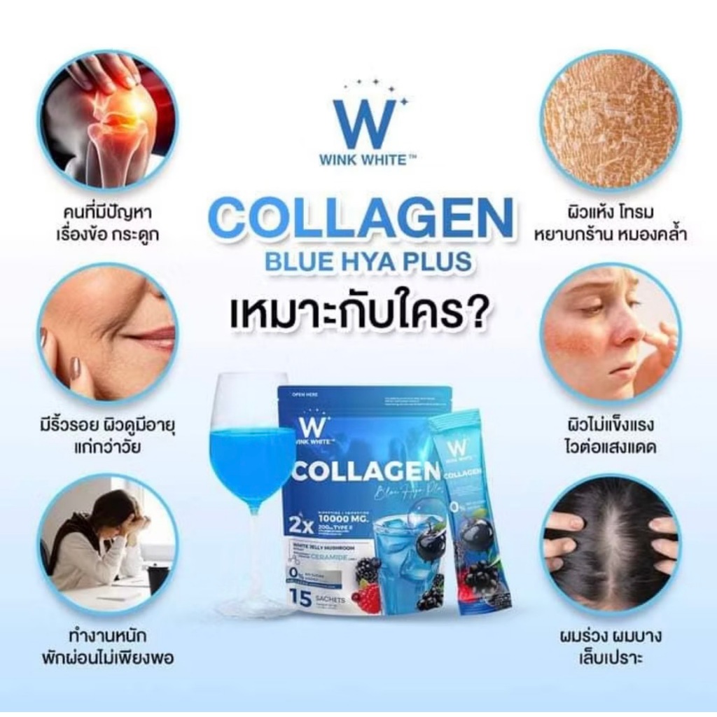 WINK WHITE COLLAGEN PINK GLOW & BLUE HYA & VITAMIN-C COQ10 วิงค์ไวท์ คอลลาเจน และ วิตามินซี ( 1 แพ๊ค 15 ซอง )