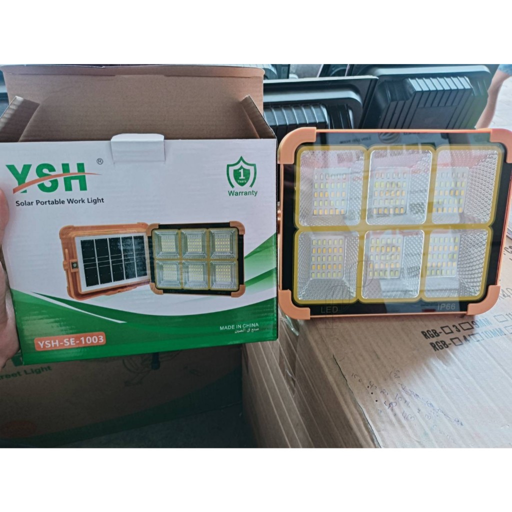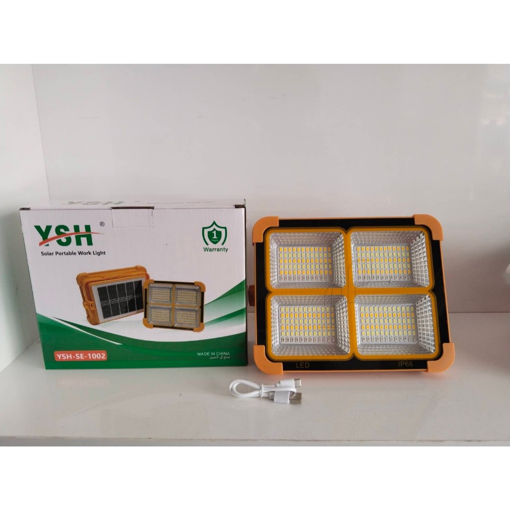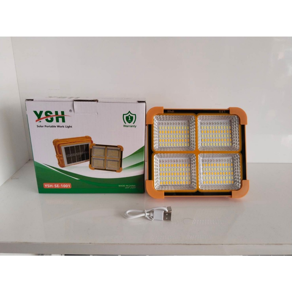 โคมไฟโซล่าเซลล์ ไฟฉุกเฉิน สปอร์ตไลท์พกพา แขวนได้ ปรับแสงได้ 4 แบบ ชาร์จมือถือได้ กันน้ำฝน IP66