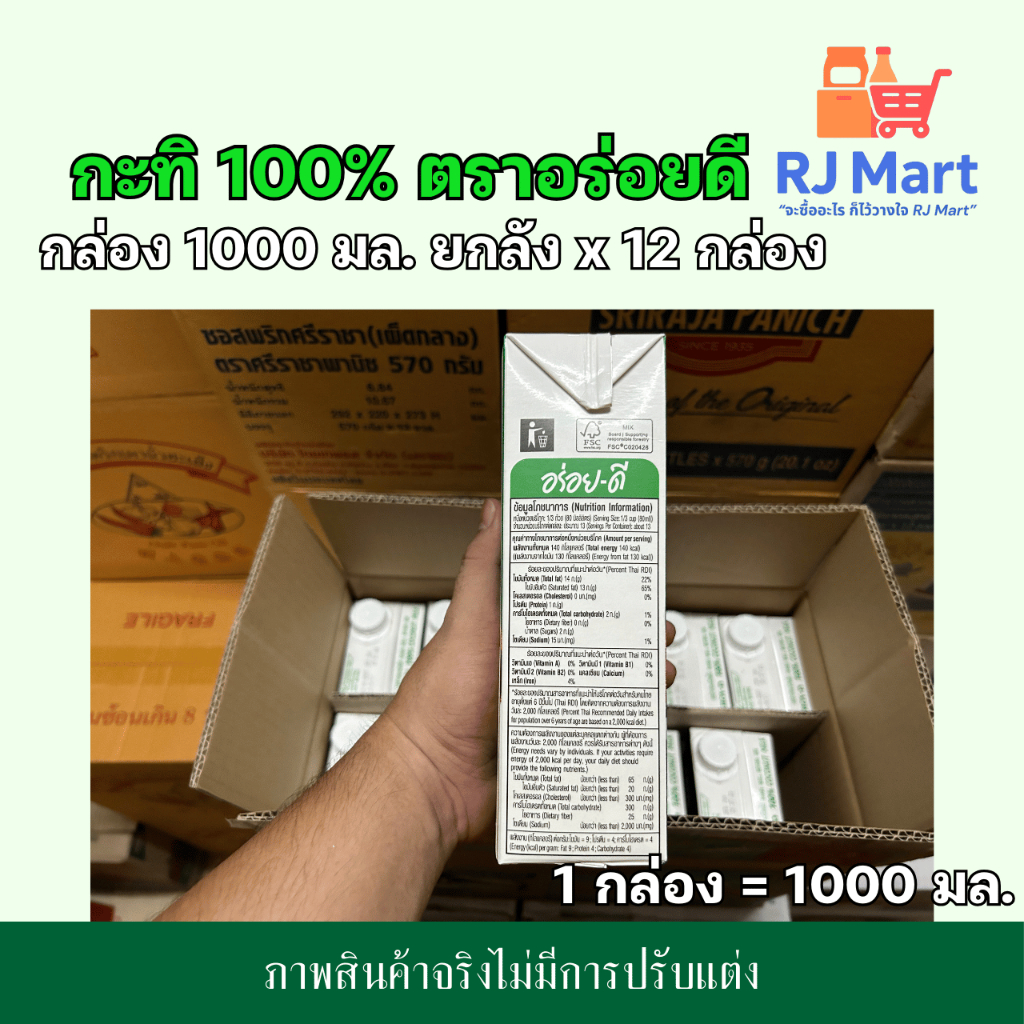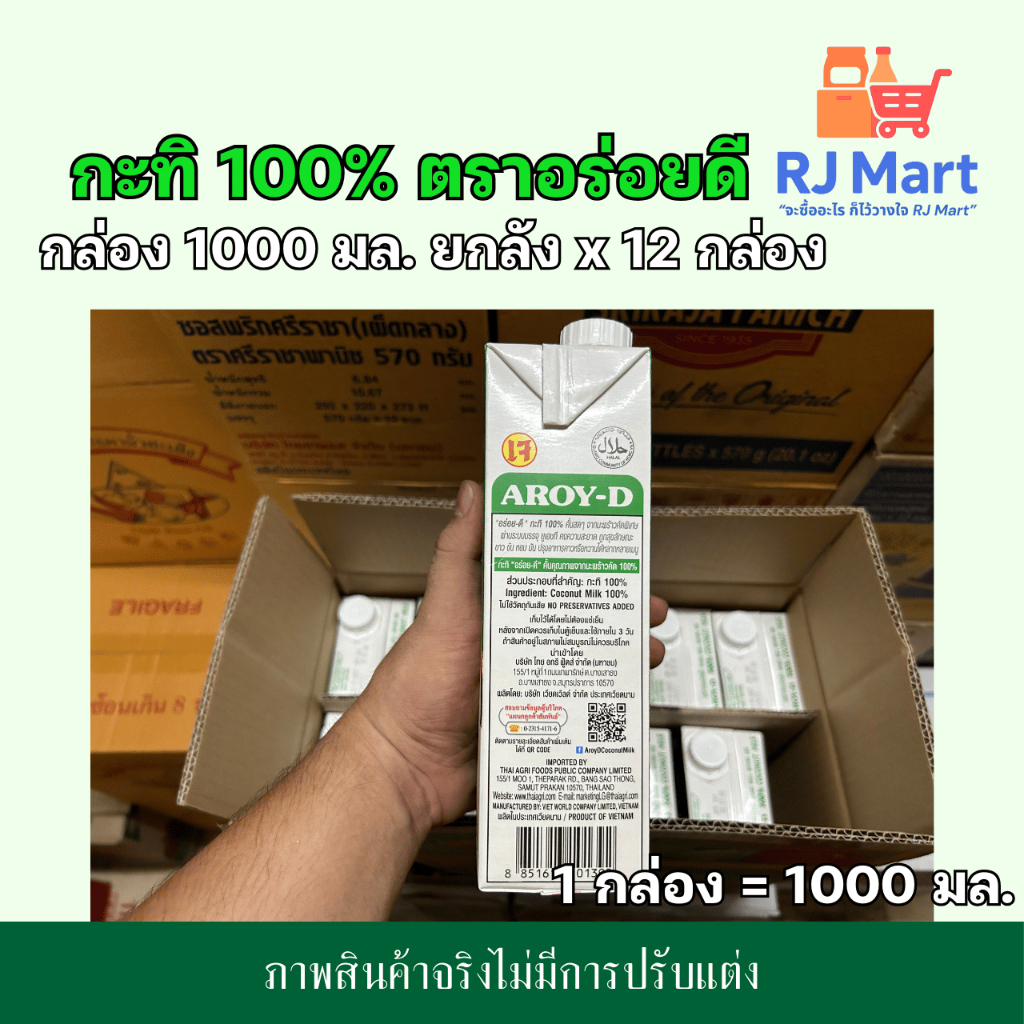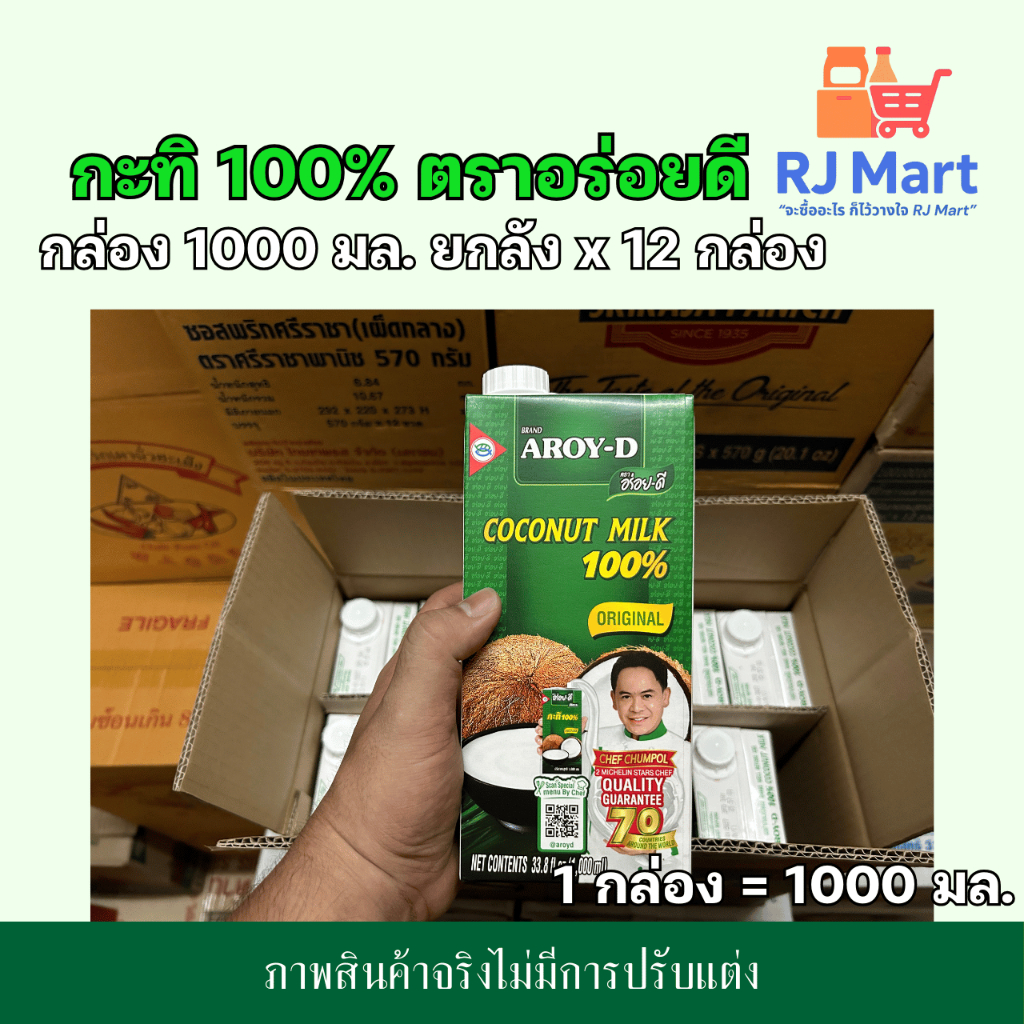 [ยกลัง] กะทิ 100% ตราอร่อยดี (AROY-D) กล่องใหญ่ 1000 มล. x 12 กล่อง
