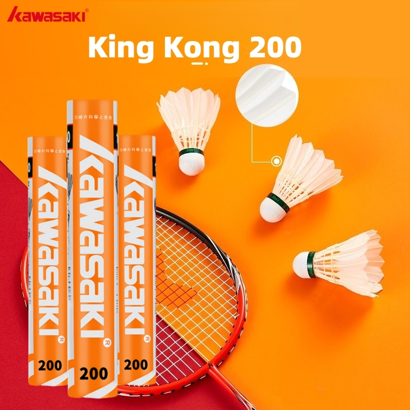 KAWASAKI ลูกขนไก่คาวาซากิ 12 ชิ้น King Kong 200 3 in1 แบดมินตันขนห่านทนทานและมั่นคงสําหรับการออกกําลังกายการฝึกอบรม