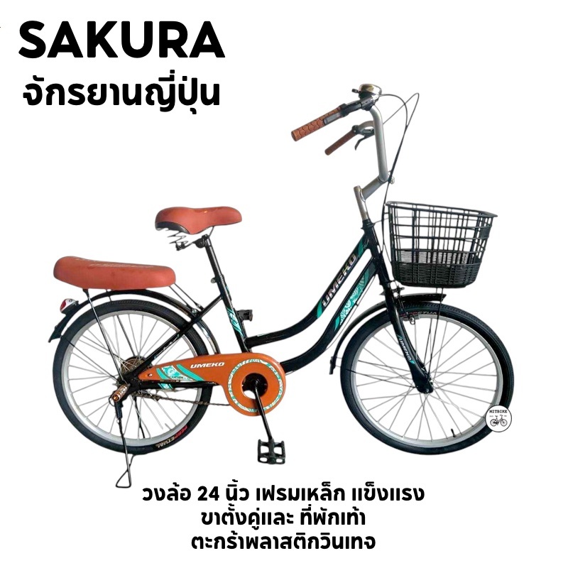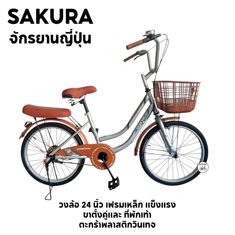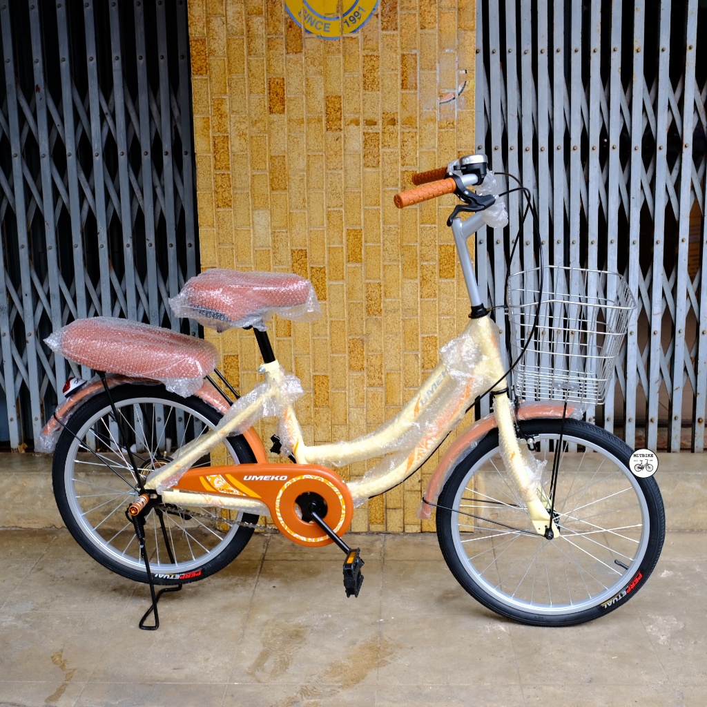 จักรยานแม่บ้าน จักรยานทรงญี่ปุ่น วงล้อ 20 นิ้ว ตะกร้าเหล็ก เบาะท้ายนุ่ม ขาตั้งคู่ ล็อคได้