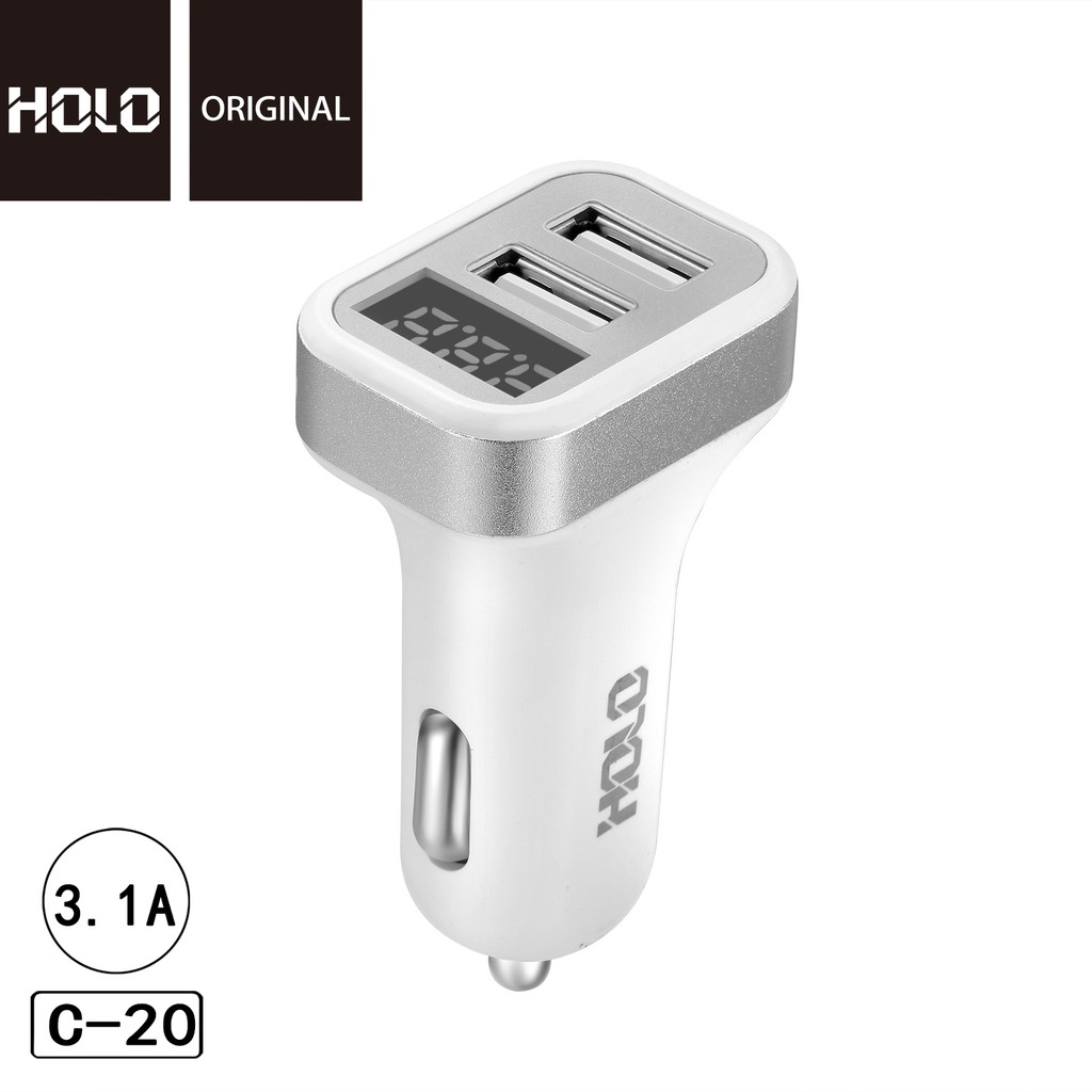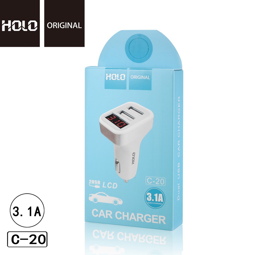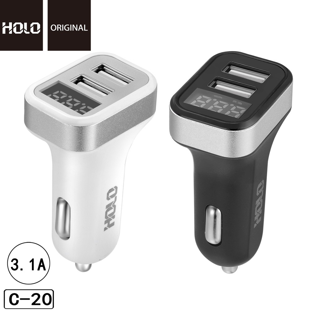 HOLO C-20 Car Charger LCD 2USB หัวชาร์จโทรศัพท์ในรถ หน้าจอLCDดิจิตอลแสดงตัวเลข