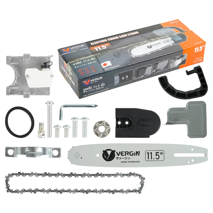 VERGIN ชุดบาร์เลื่อยโซ่ บาร์โซ่ต่อหินเจียร์ พร้อมกระปุกน้ำมันเลี้ยงโซ่ VERGIN 11.5 นิ้ว. ชุดเเปลงหินเจียร์เป็นเลื่อไฟฟ้า