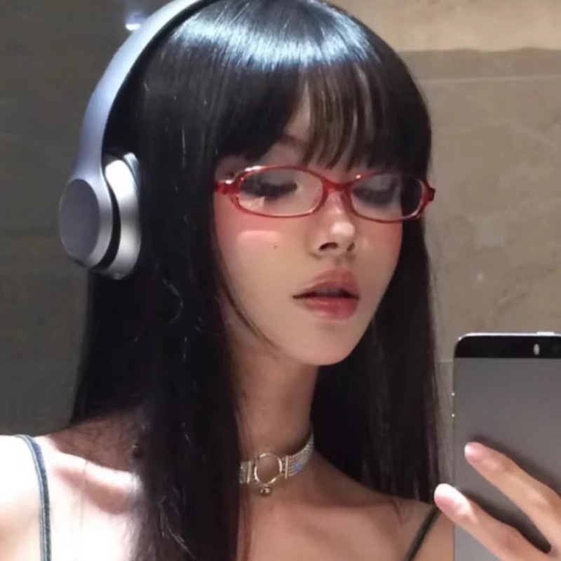 Papaozhu วินเทจ สีแดง เลนส์ใส แคบ สี่เหลี่ยมผืนผ้า แว่นตาสําหรับผู้หญิง กลางแจ้ง แฟชั่น แว่นตา OOTD เครื่องประดับ