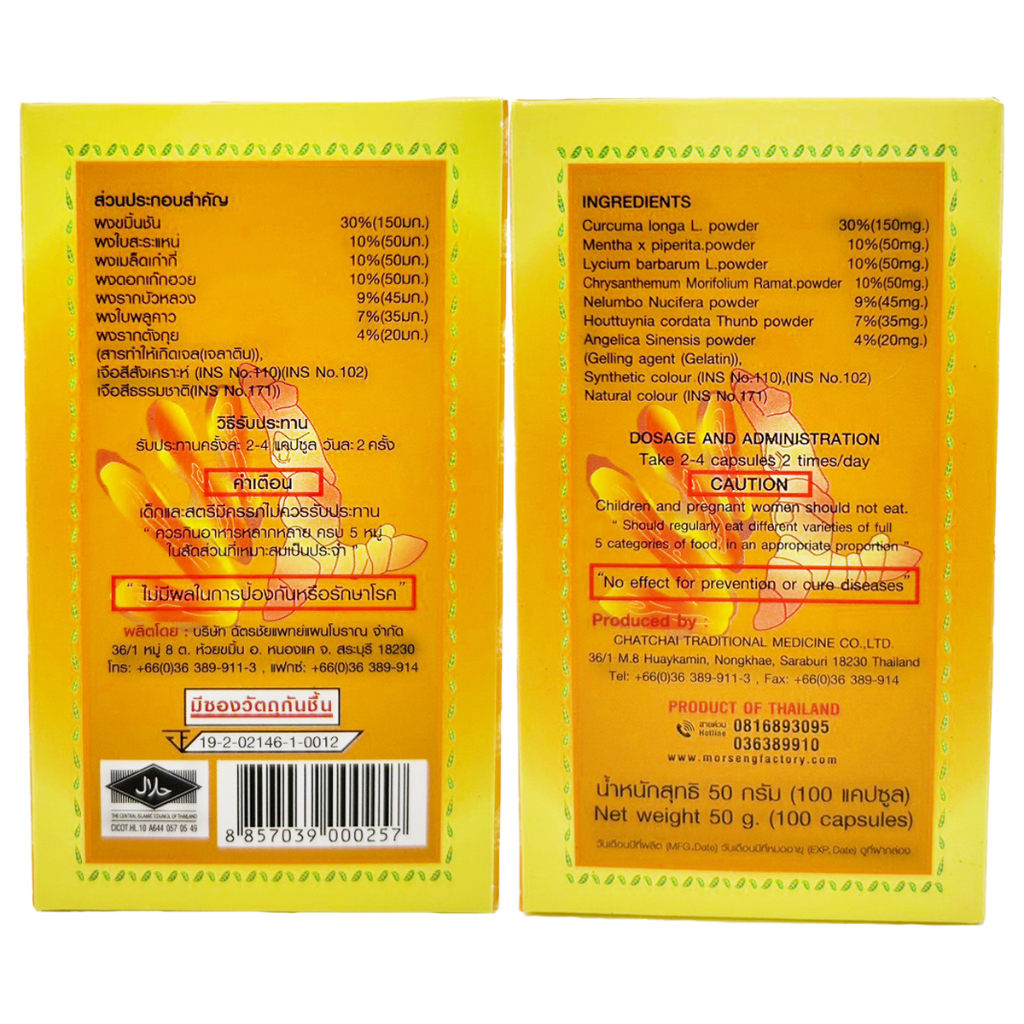 Morseng Brand ผลิตภัณฑ์เสริมอาหารผสมขมิ้นชันไทย ตราหมอเส็ง 100 แคปซูล [ของแท้ 100% มีบาร์โค้ด]