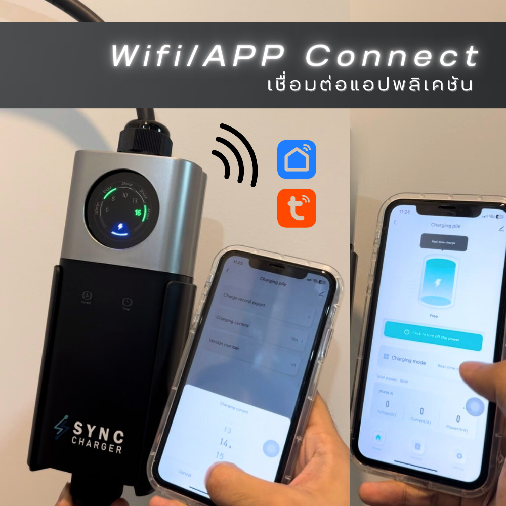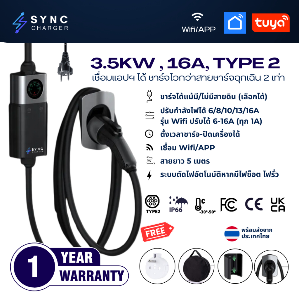 SYNC อุปกรณ์ชาร์จรถไฟฟ้า EV 16A , 3.5 KW Type 2 เชื่อม Wifi ผ่าน Tuya / Smart Life APP