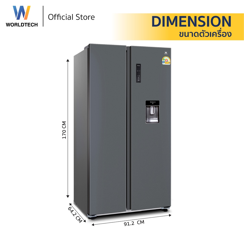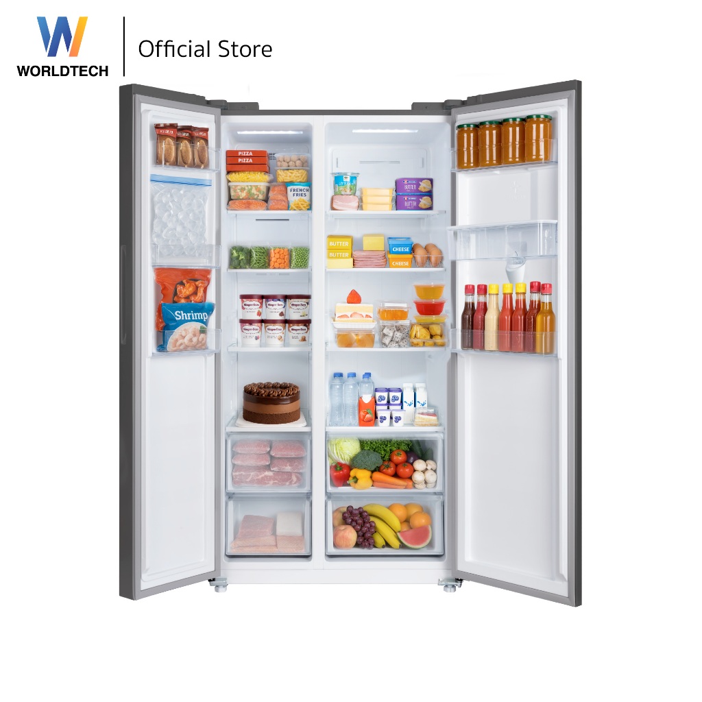 Worldtech ตู้เย็น 2 ประตู Side by Side 18.6Q/526 ลิตร ระบบ Inverter เงียบ ประหยัดไฟ รุ่น WT-MRF-560W