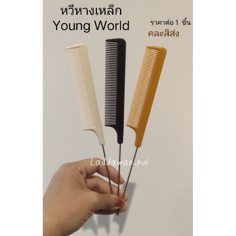 หวีหางเหล็ก Young World หวีแบ่งผม หวีหาง หวี (คละสีส่ง) ราคาต่อ1ชิ้น