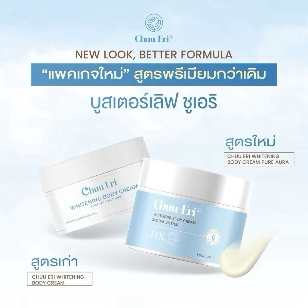 [แพคเกจใหม่] บูสเตอร์เลิฟ Chuueri Whitening Body Cream ชูเอริ บำรุงผิวขาวกระจ่างใส ครีมทาผิวกาย 250กรัม