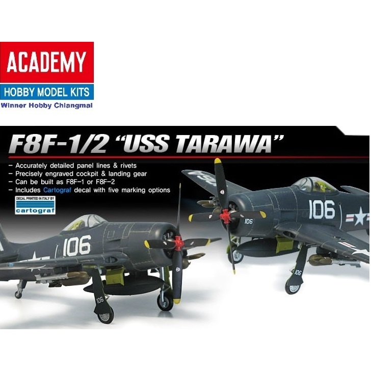 โมเดลเครื่องบิน Academy 12313 F8F-1/2 USS Tarawa scale 1/48