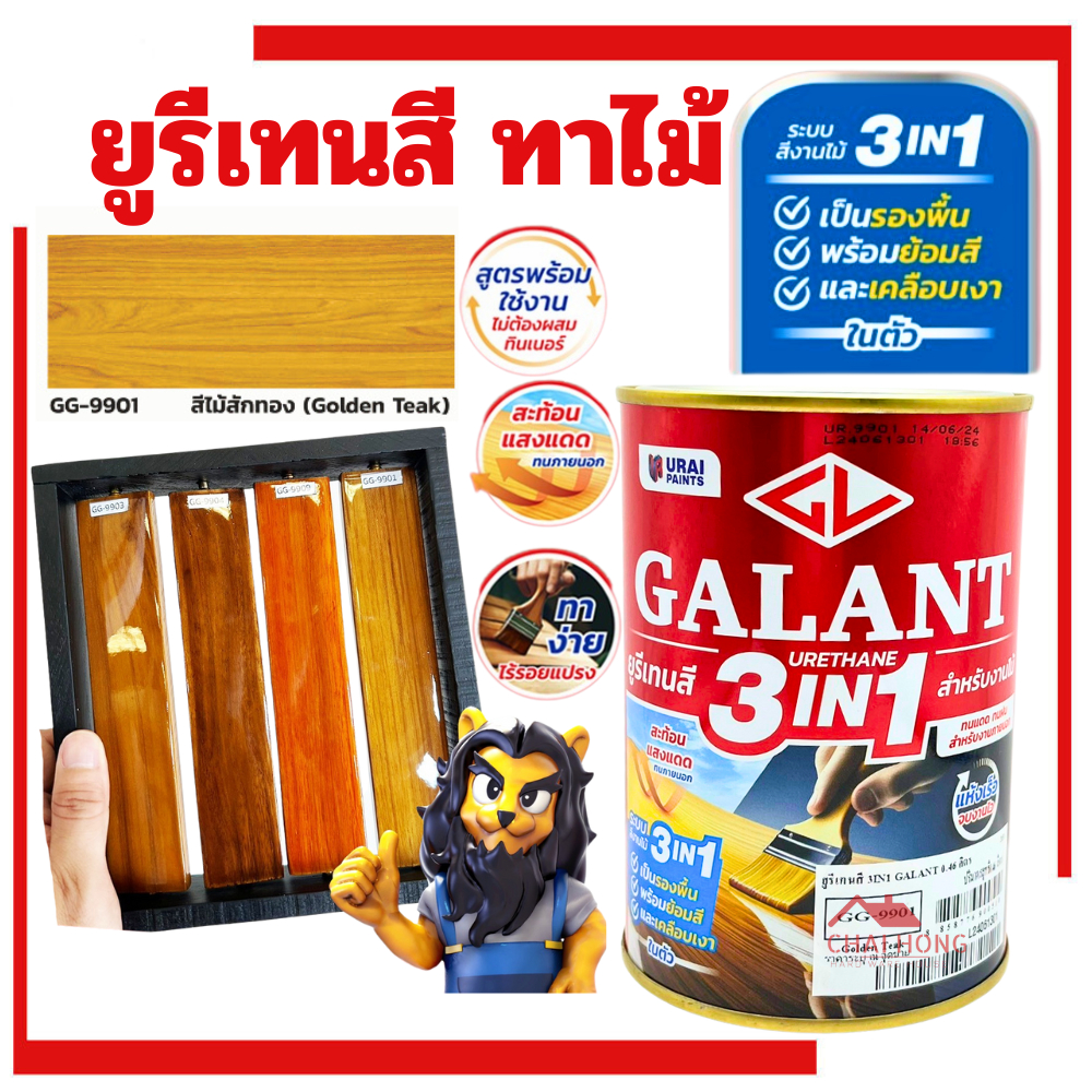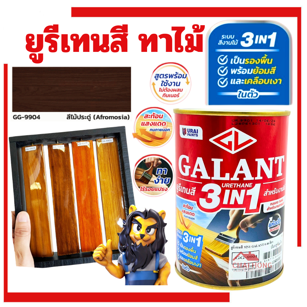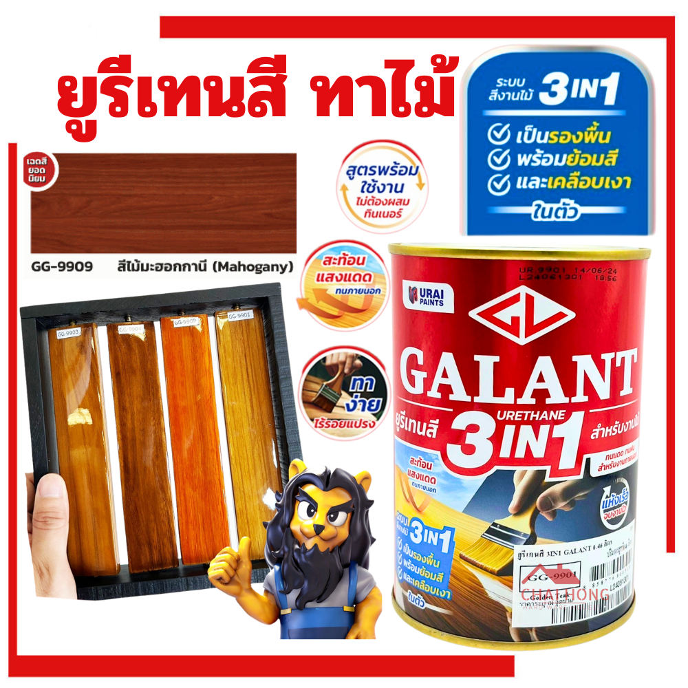 กาแลนท์ ยูรีเทนสี 3in1 GALANT ย้อมสีไม้ ทาไม้กลางแจ้ง 0.46 ลิตร ไม้สัก ไม้ประดู่ ไม้มะฮอกกานี รองพื้น เคลือบเงาไม้ ทาไม้