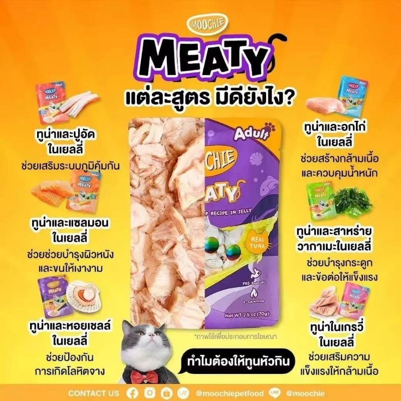 Moochie อาหารเปียกแมว มูชี่ ไม่เติมเกลือ เพื่อสุขภาพน้องแมวขนาด 70 g (12ซอง)