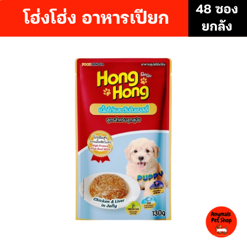 (เซต 48 ซอง) (130 g.)โฮ่ง โฮ่ง อาหารเปียกสุนัขแบบซอง Hong Hong Pouch