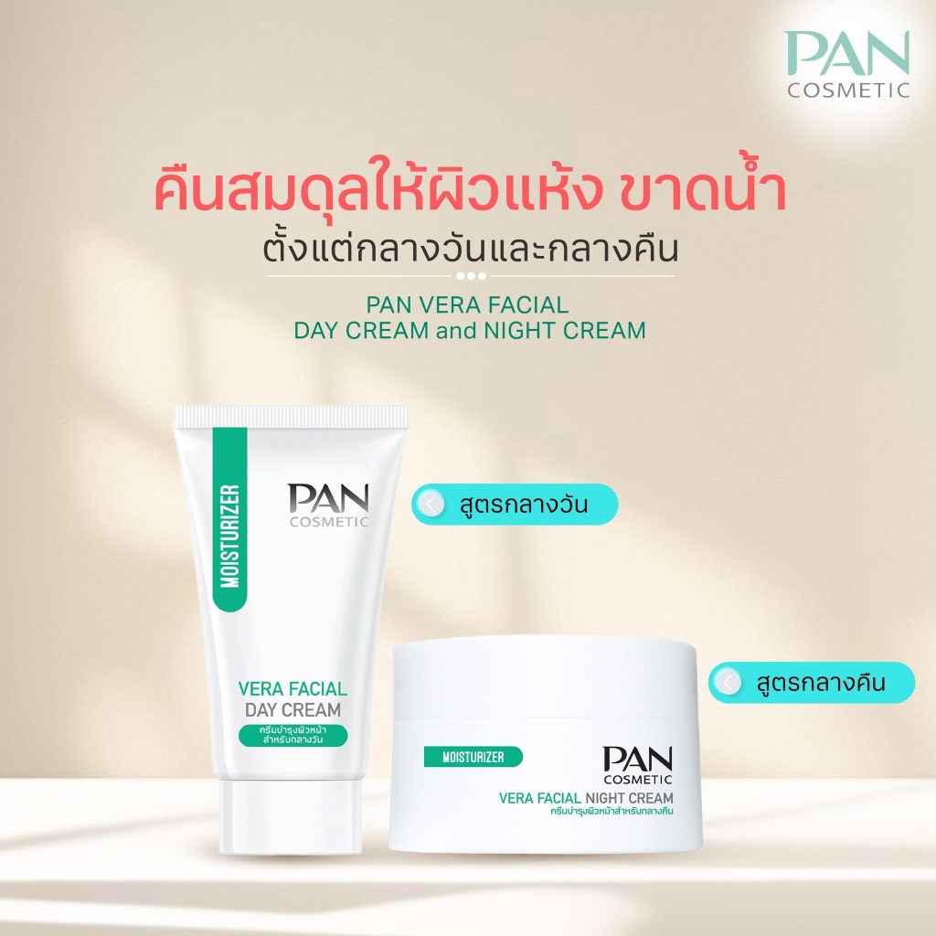 (1แถม1) Pan Cosmetic Vera Facial Day Cream 50g+Night Cream 45g แพน คอสเมติก เวร่า เฟเชียล เดย์ ครีม 50กรัม+ไนท์ ครีม 45ก