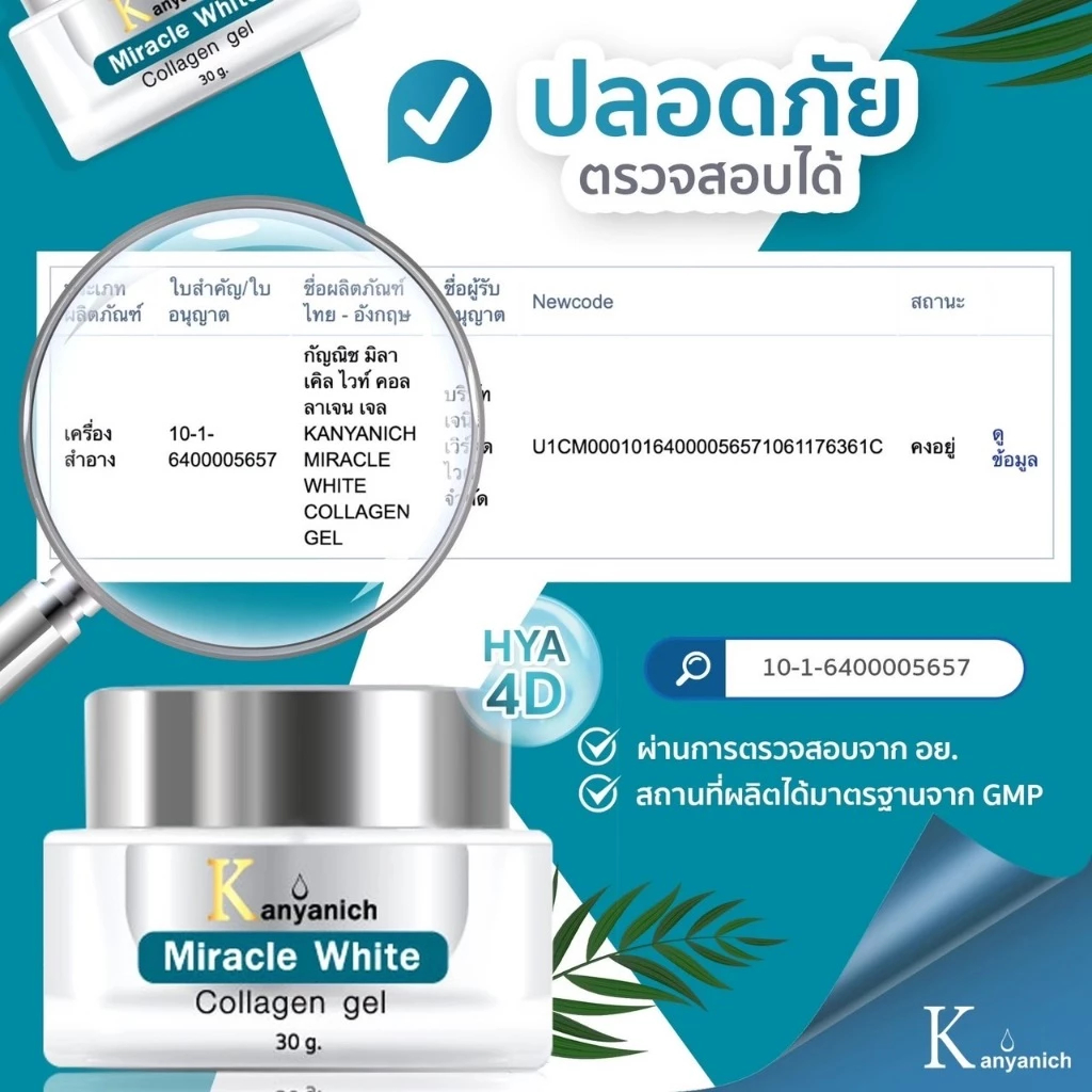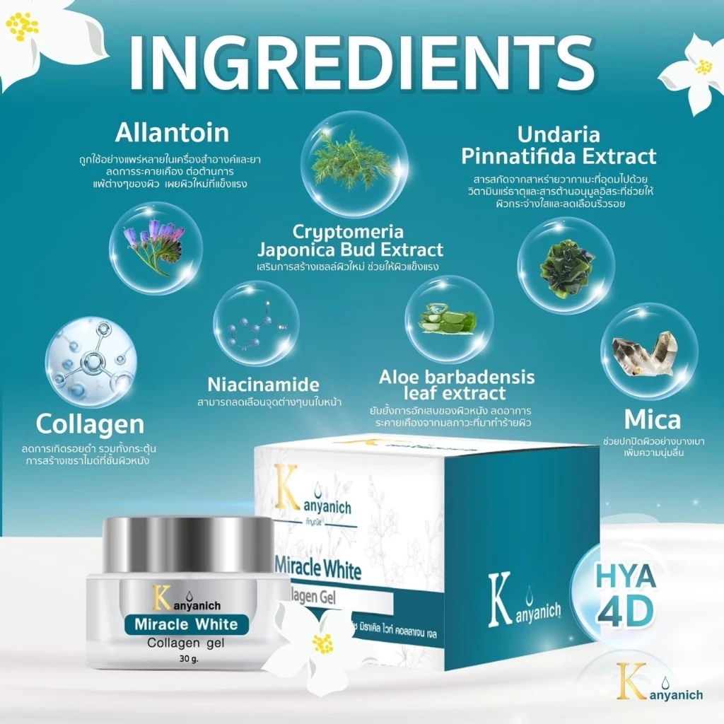 𝐊𝐚𝐧𝐲𝐚𝐧𝐢𝐜𝐡 𝐌𝐢𝐫𝐚𝐜𝐥𝐞 𝐖𝐡𝐢𝐭𝐞 𝐂𝐨𝐥𝐥𝐚𝐠𝐞𝐧 𝐆𝐞𝐥 ครีมเจลคลอลาเจน ครีมผิวอิ่มน้ำ หน้ายกกระชับ ผิวนุ่มชุ่มชื้น